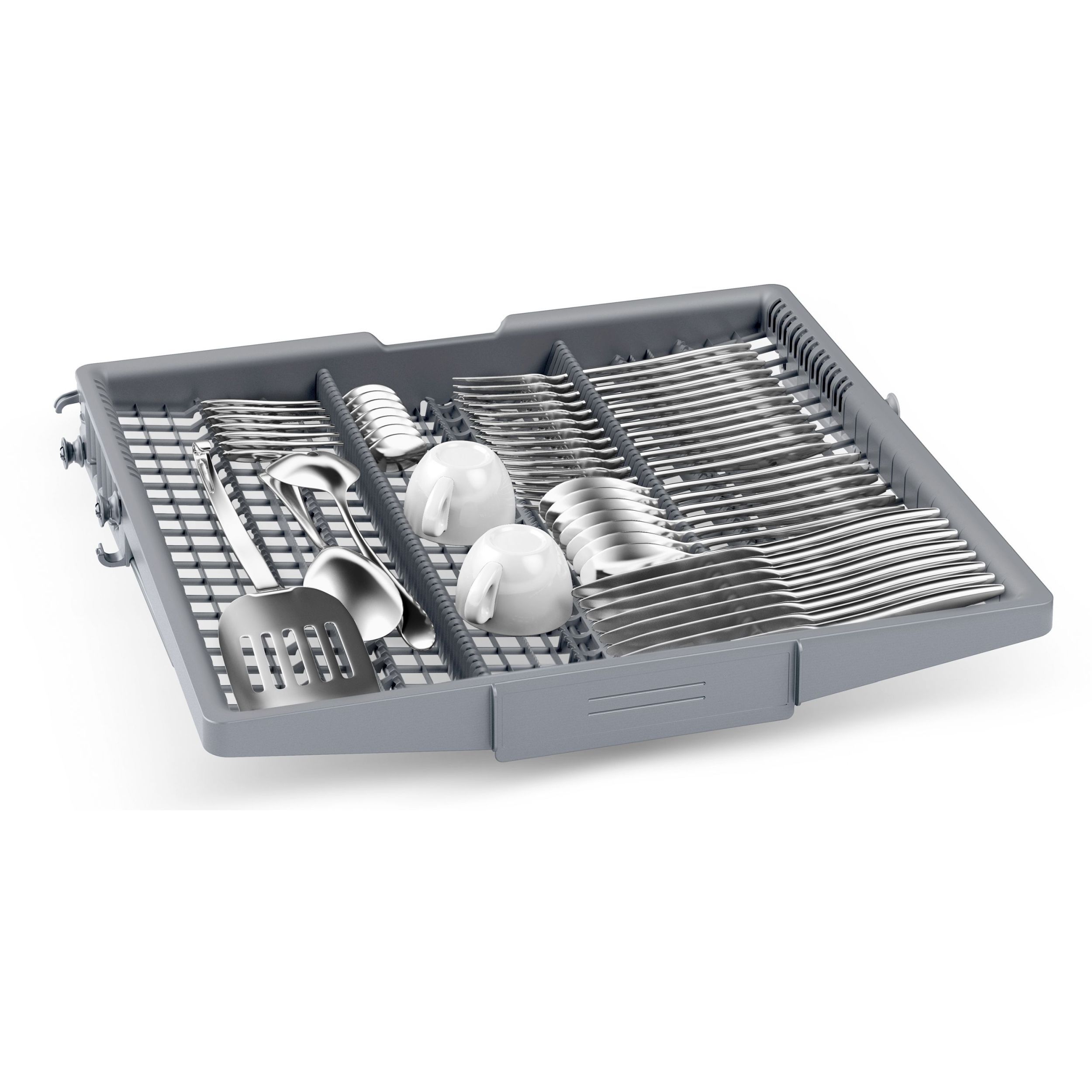 Datorită sertarului de tacâmuri VarioDrawer, cel de-al treilea nivel de încărcare, mașinile de spălat vase Bosch sunt și mai confortabile. Acesta este locul ideal pentru tacâmuri și ustensile mici de bucătărie, de exemplu polonice și teluri. Acesta îți oferă mai mare flexibilitate la încărcarea mașinii tale de spălat vase și creează mai mult spațiu în interiorul compartimentului de spălare. Coșul pentru tacâmuri din coșul inferior poate fi înlocuit cu VarioDrawer pentru crea o capacitate de până la 14 seturi de veselă standard în cazul mașinilor de spălat vase de 60 cm, și de până la 10 seturi de veselă standard pentru mașinile de 45 cm.
