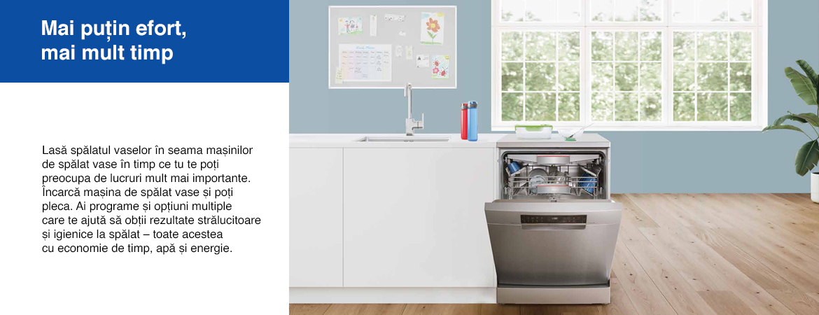 Când vine vorba de economisirea resurselor și de îndeplinirea celor mai înalte cerințe în ceea ce privește rezultatele spălării vaselor, s-ar putea să fie nevoie să faci un compromis.Datorită sistemului nostru de economisire a energiei de înaltă eficiență, bazat pe tehnologia de uscare Zeolith, o izolație inovatoare pe bază de spumă și tehnologie inteligentă, mașinile noastre de spălat vase ating clasa energetică A. De fiecare dată, oricând, fără compromisuri. Te poți oricând baza pe mașinile noastre de spălat vase Bosch cu eticheta energetică A, pentru rezultate eficiente și perfecte de spălare a vaselor, în orice condiții.