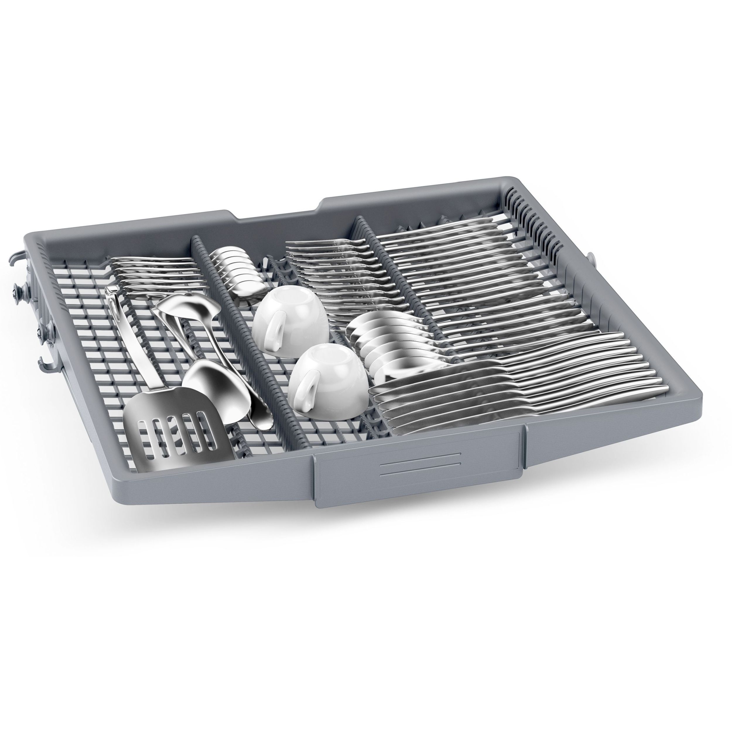 Datorită sertarului de tacâmuri VarioDrawer, cel de-al treilea nivel de încărcare, mașinile de spălat vase Bosch sunt și mai confortabile. Acesta este locul ideal pentru tacâmuri și ustensile mici de bucătărie, de exemplu polonice și teluri. Acesta îți oferă mai mare flexibilitate la încărcarea mașinii tale de spălat vase și creează mai mult spațiu în interiorul compartimentului de spălare. Coșul pentru tacâmuri din coșul inferior poate fi înlocuit cu VarioDrawer pentru crea o capacitate de până la 14 seturi de veselă standard în cazul mașinilor de spălat vase de 60 cm, și de până la 10 seturi de veselă standard pentru mașinile de 45cm.