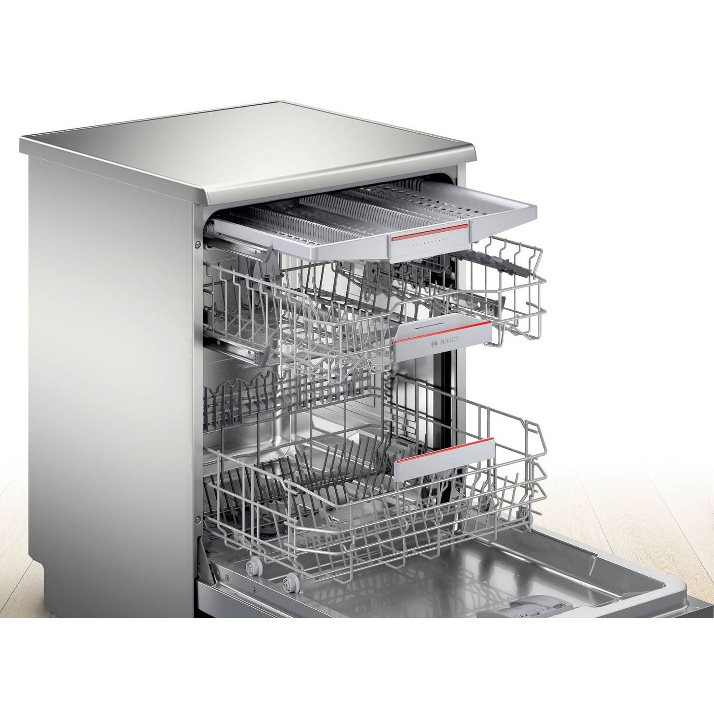 VarioDrawer Datorită sertarului de tacâmuri VarioDrawer, cel de-al treilea nivel de încărcare, mașinile de spălat vase Bosch sunt și mai confortabile. Acesta este locul ideal pentru tacâmuri și ustensile mici de bucătărie, de exemplu polonice și teluri. Acesta îți oferă mai mare flexibilitate la încărcarea mașinii tale de spălat vase și creează mai mult spațiu în interiorul compartimentului de spălare. Coșul pentru tacâmuri din coșul inferior poate fi înlocuit cu VarioDrawer pentru crea o capacitate de până la 14 seturi de veselă standard în cazul mașinilor de spălat vase de 60 cm, și de până la 10 seturi de veselă standard pentru mașinile de 45 cm.