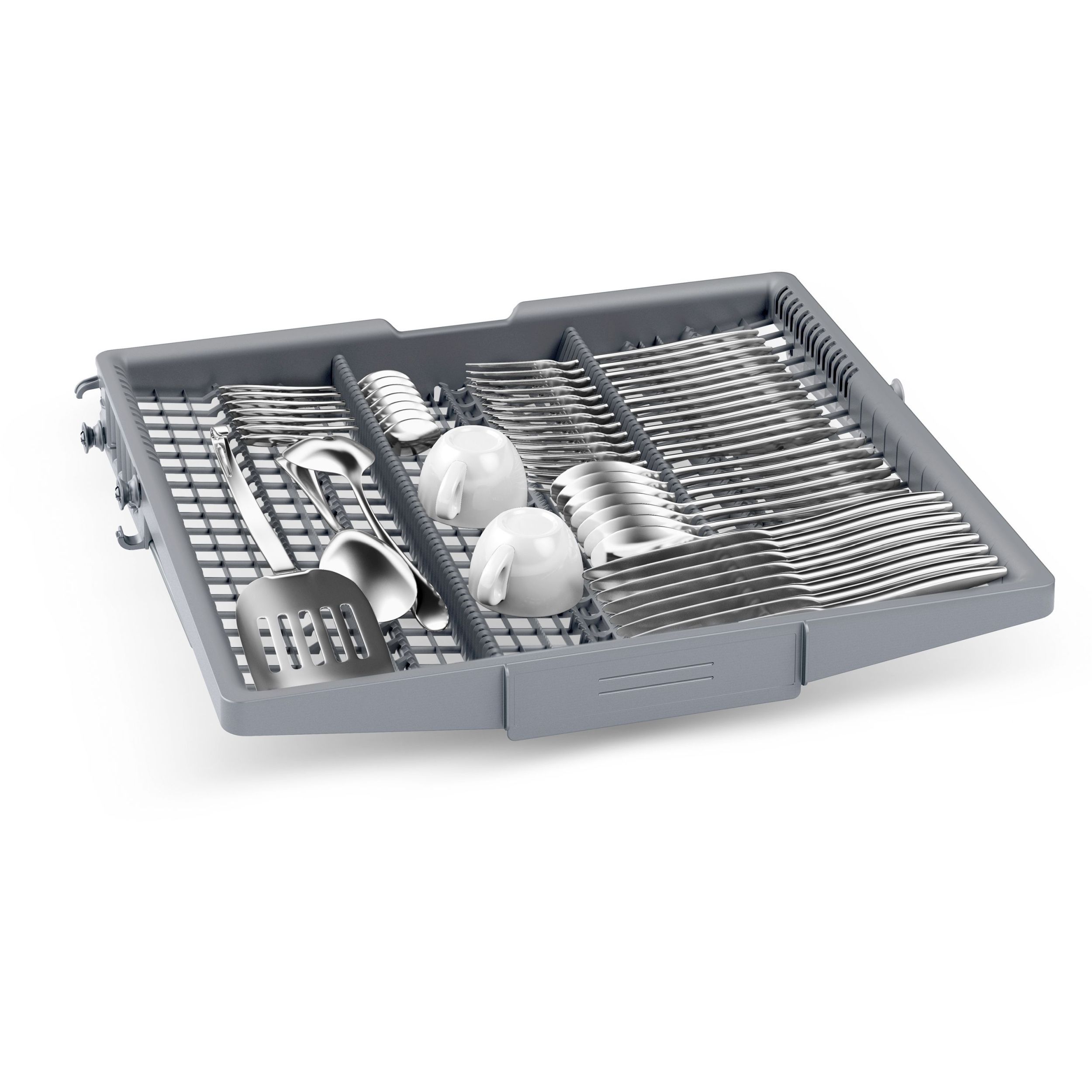 Datorită sertarului de tacâmuri VarioDrawer, cel de-al treilea nivel de încărcare, mașinile de spălat vase Bosch sunt și mai confortabile. Acesta este locul ideal pentru tacâmuri și ustensile mici de bucătărie, de exemplu polonice și teluri. Acesta îți oferă mai mare flexibilitate la încărcarea mașinii tale de spălat vase și creează mai mult spațiu în interiorul compartimentului de spălare. Coșul pentru tacâmuri din coșul inferior poate fi înlocuit cu VarioDrawer pentru crea o capacitate de până la 14 seturi de veselă standard în cazul mașinilor de spălat vase de 60 cm, și de până la 10 seturi de veselă standard pentru mașinile de 45cm.