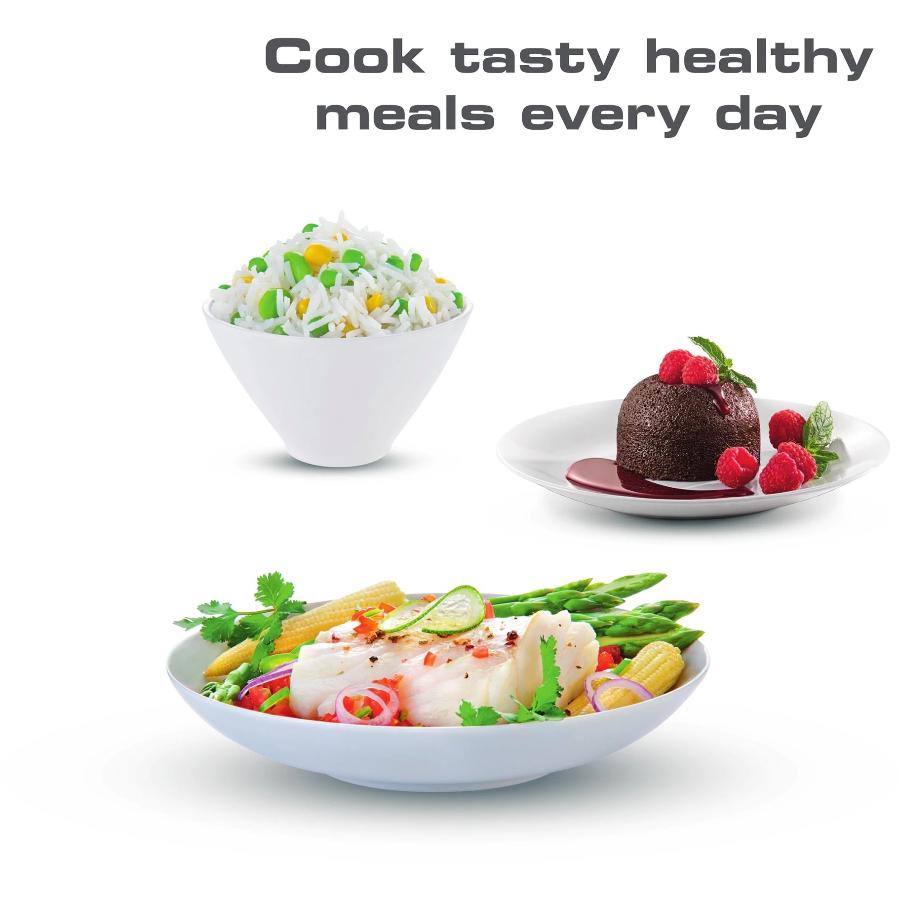 Gătește mese copioase și sănătoase zi de zi. Bucură-te de toate beneficiile gătitului la abur și creează rețete delicioase ușor și simplu. Cele 2 boluri pot fi stivuite pentru o stocare compactă. Cronometrul de până la 60 de minute cu funcție de oprire automată, fereastra prentru verificarea nivelului de apă și posibilitatea de a umple aparatul cu apă sporesc confortul pentru ca tu să te poți bucura de savoarea preparatelor tale.