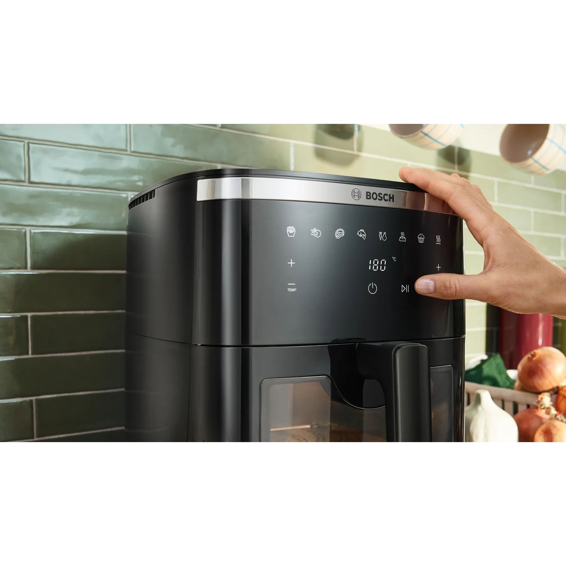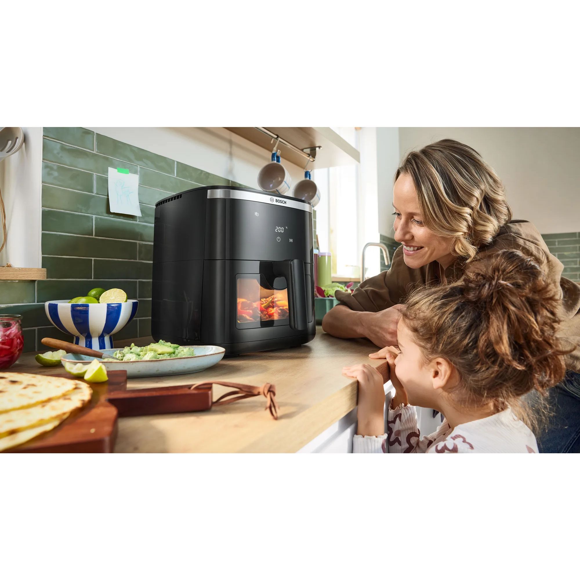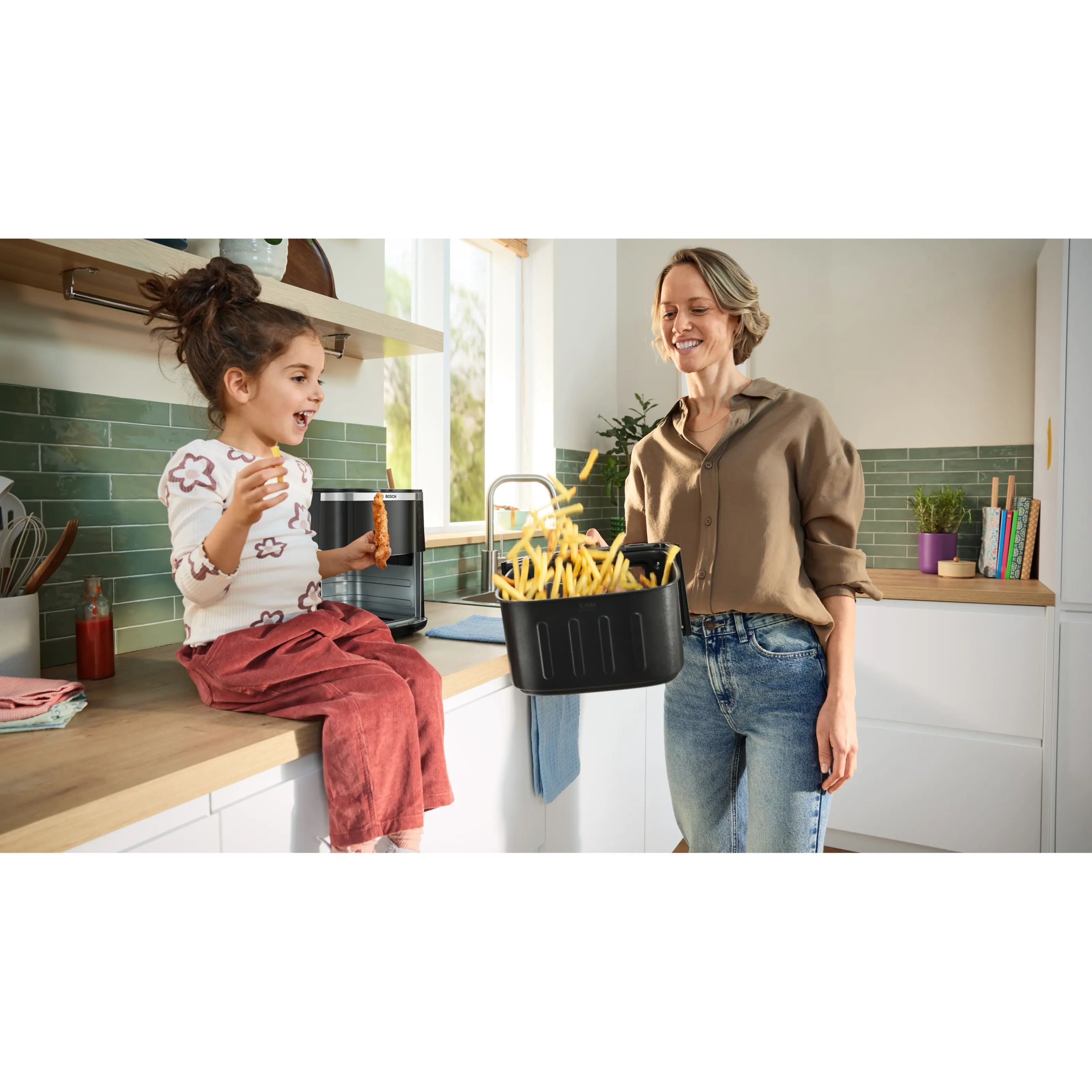 Gătește sănătos cu friteuza cu aer de la Bosch, deoarece necesită fie deloc, fie foarte puțin ulei datorită circulației rapide a aerului.