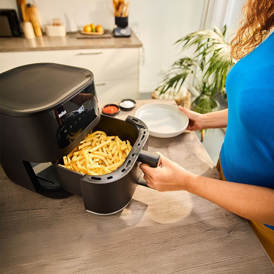 Sertarul spațios oferă o capacitate mare de a găti o varietate de gustări garnituri și mese complete:cum ar fi 1,5kg de pui sau 1,4kg de cartofi prăjiți.