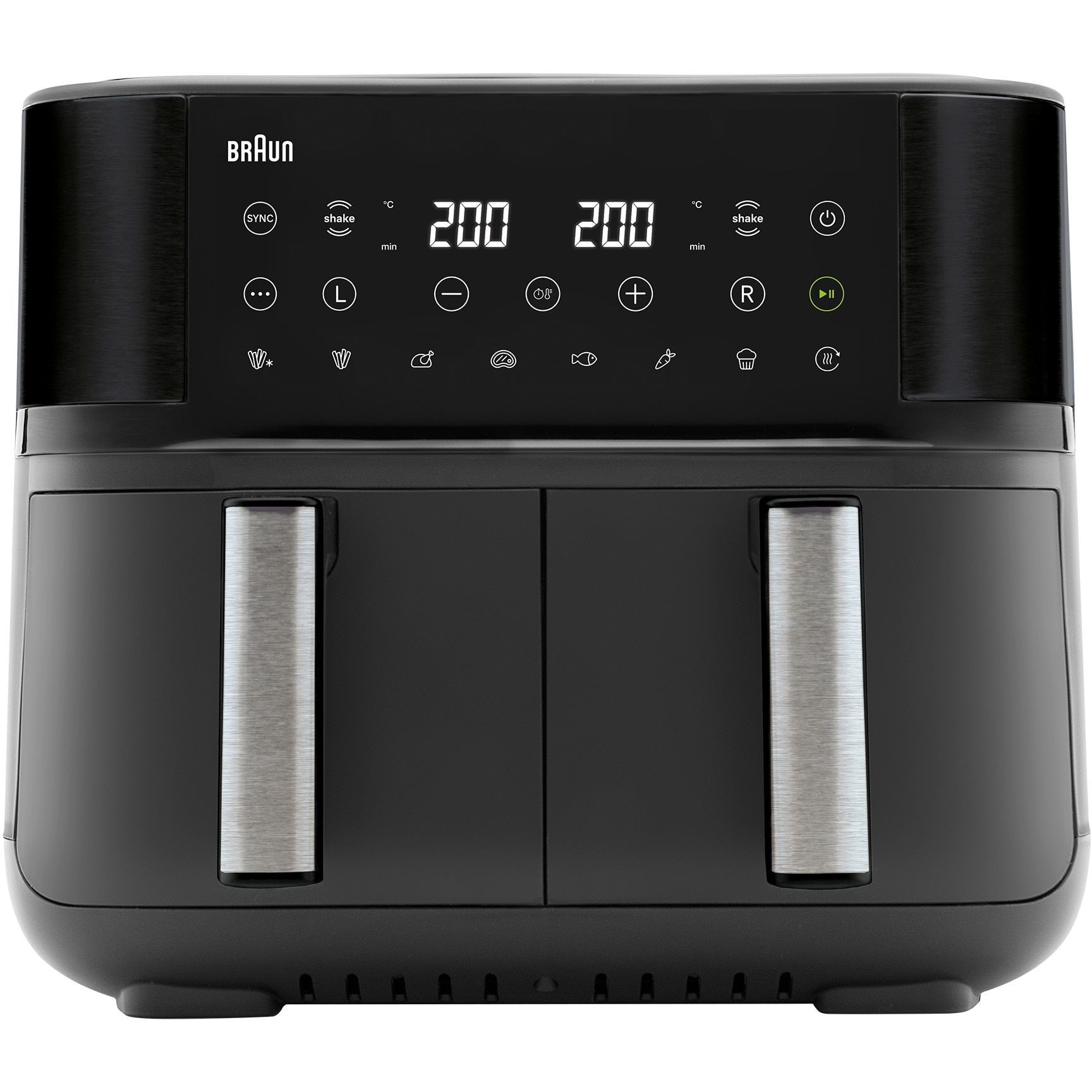 Friteuză cu aer cald BRAUN TwinCook 3 TD3030IBK - 0X12500010, 2850W, 80°~200°C, Capacitate 8L (4+4), Pui 1.4kg total, Cartofi congelați 1.8kg total, RealAir, Funcție SYNC, G6.97kg, Matt Black