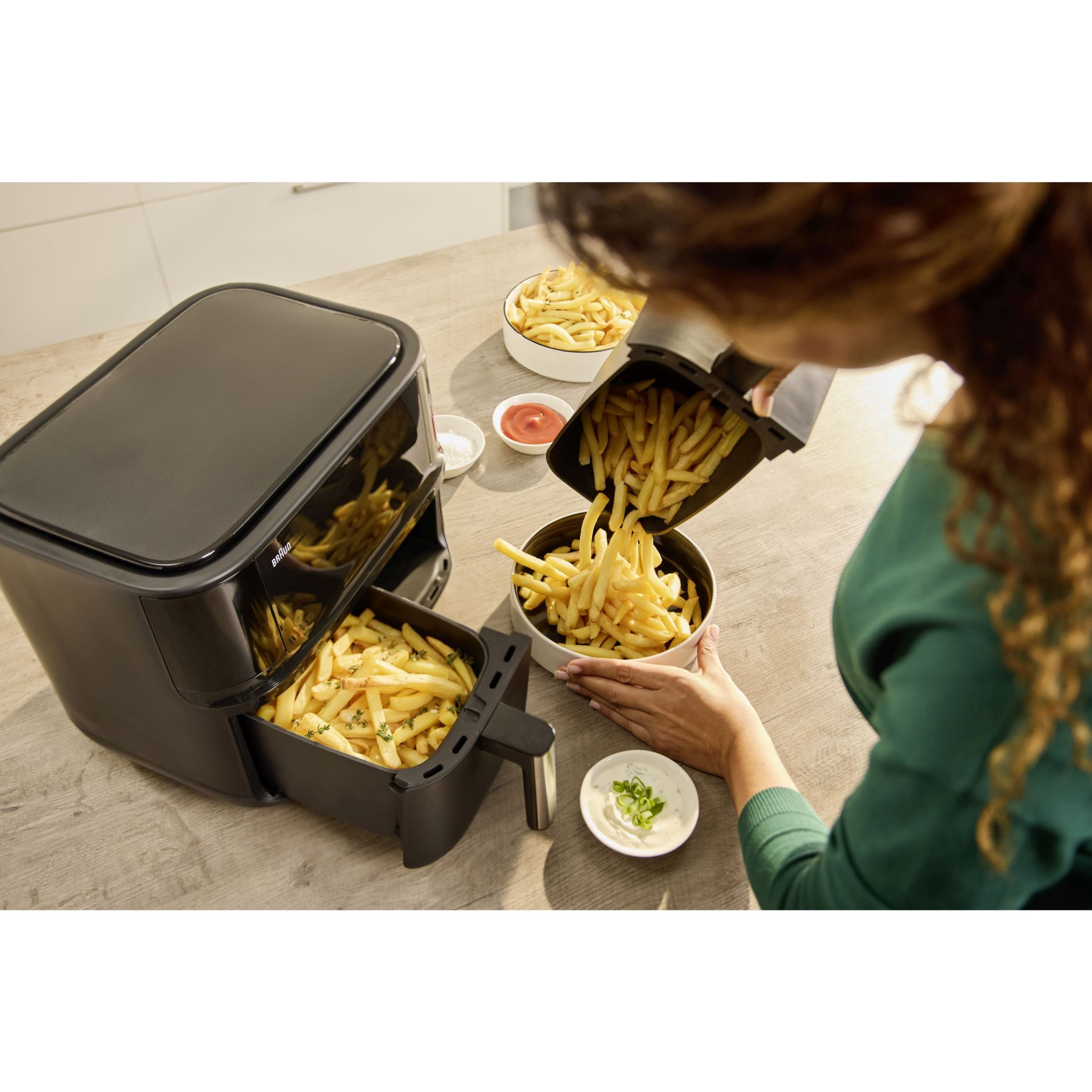 Sertarele de 4 L oferă o capacitate suficientă pentru a găti o varietate de gustări, garnituri și mese complete, cum ar fi 1,8kg de cartofi prăjiți (0,9kg per sertar) și un pui întreg (1,4kg).