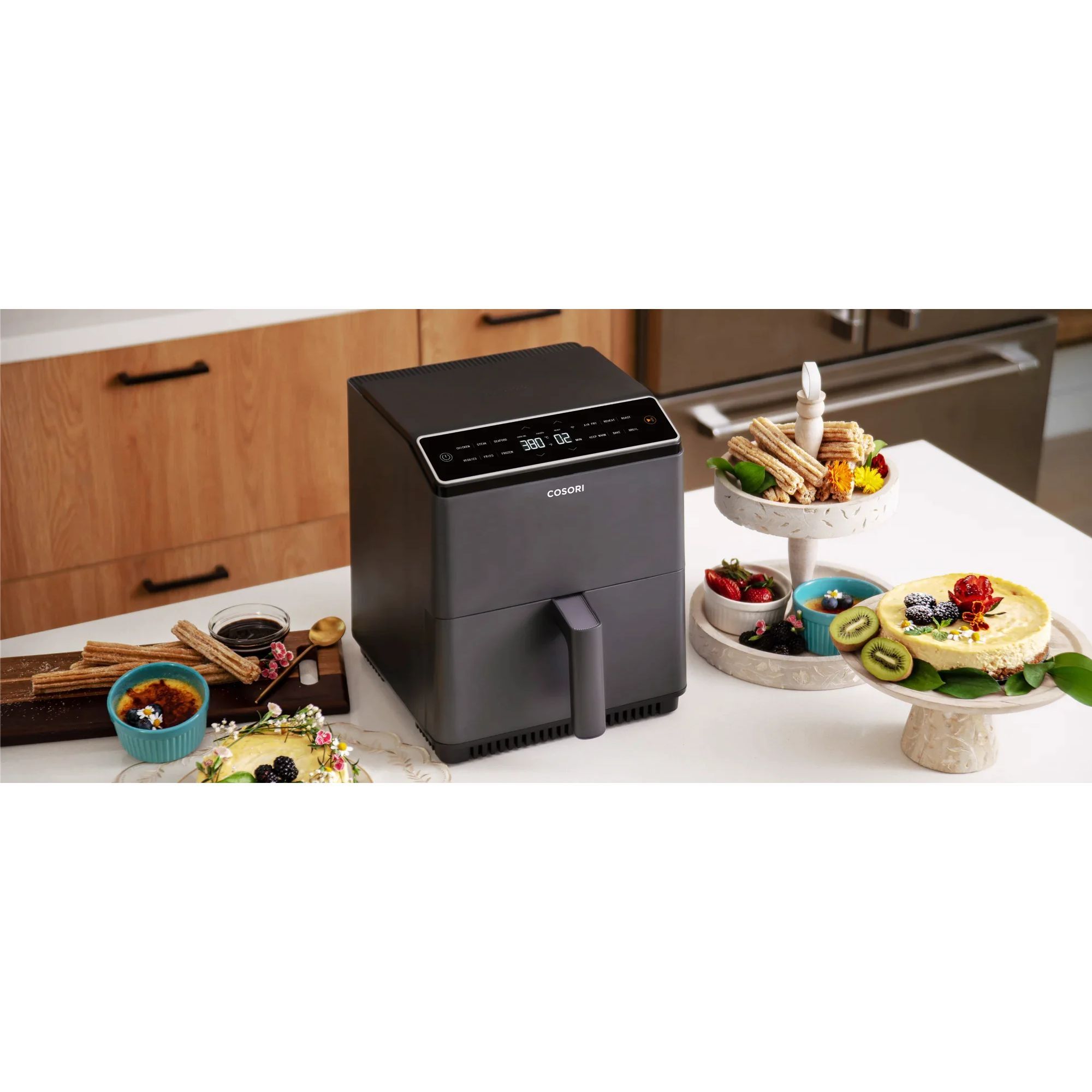 Coacere mai rapidă și mai confortabilă. Datorită tehnologiei speciale 360 ThermoIQTM și a elementelor de încălzire duble. Friteuza cu aer cald Cosori Dual Blaze, cu funcția de încălzire de jos și de sus, face ca gătitul să fie o joacă de copii și nici măcar nu trebuie să întoarceți mâncarea.