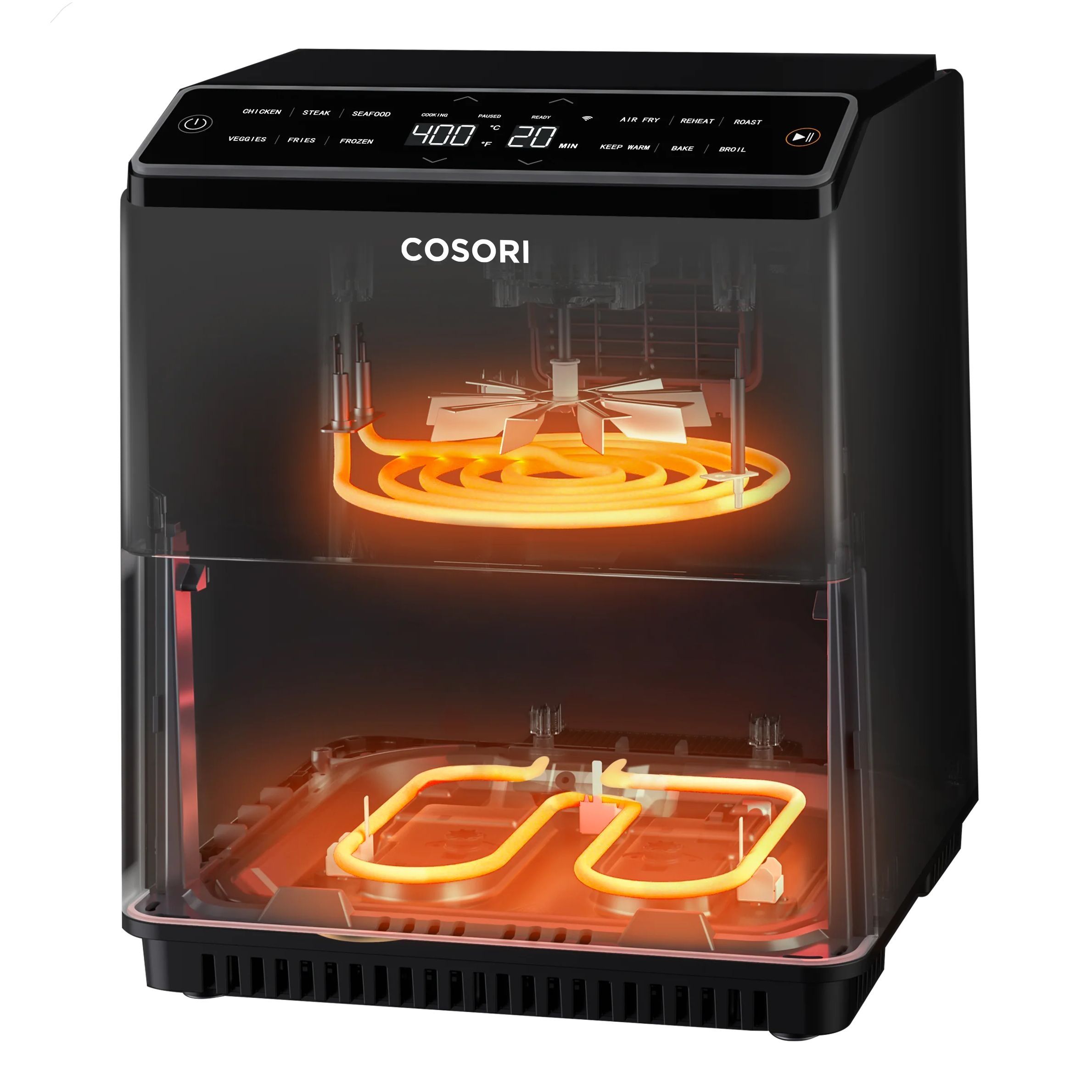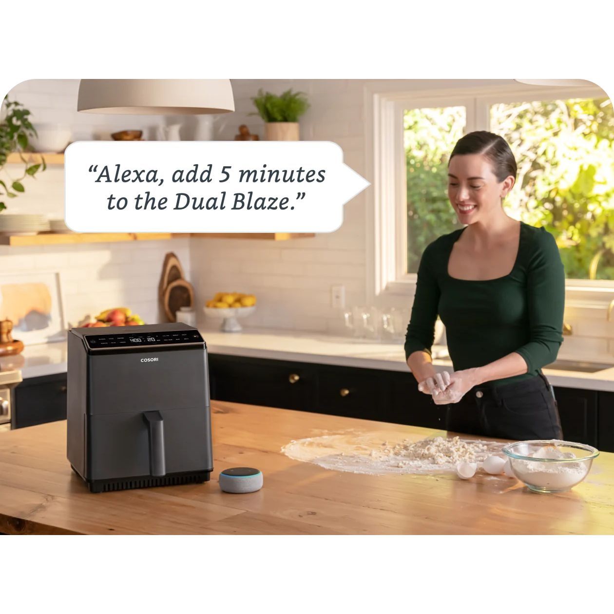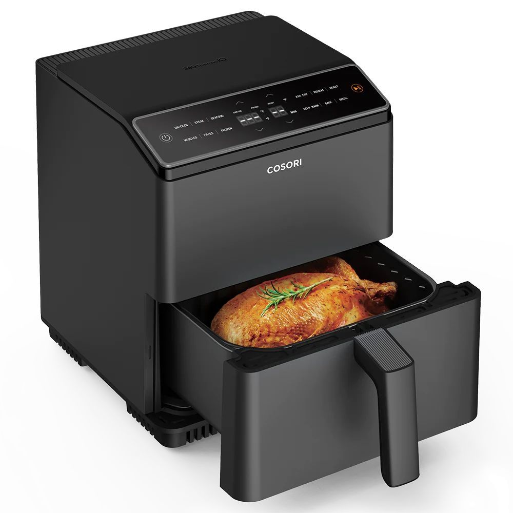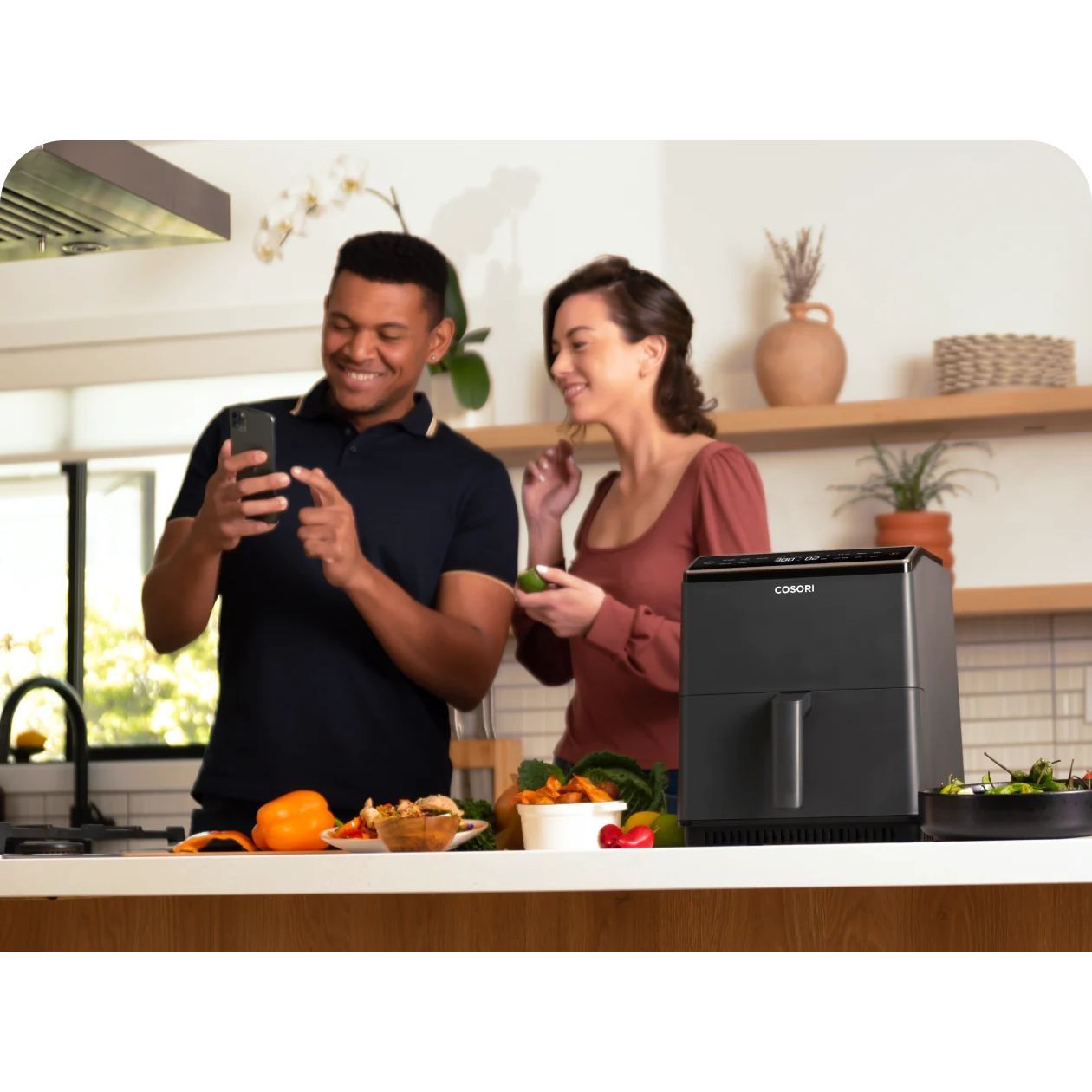 O nouă experiență de a mânca acasă. Cu utilizarea regulată a friteuzei Cosori Dual Blaze, puteți mânca delicios cu o utilizare minimă de ulei. Producând bunătăți proaspete și crocante care nu conțin aproape deloc ulei.