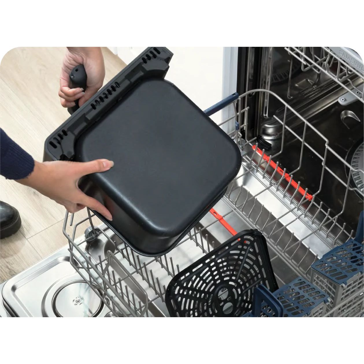 Cu o capacitate crescută cu până la 20%, de 6.4 litri. Capacitatea crescută a Cosori Dual Blaze de 6,4 litri vă permite să pregătiți chiar și un eveniment de familie mare într-un timp scurt. În plus, coșul mare poate fi spălat în mașina de spălat vase, ceea ce face curățarea rapidă și ușoară.
