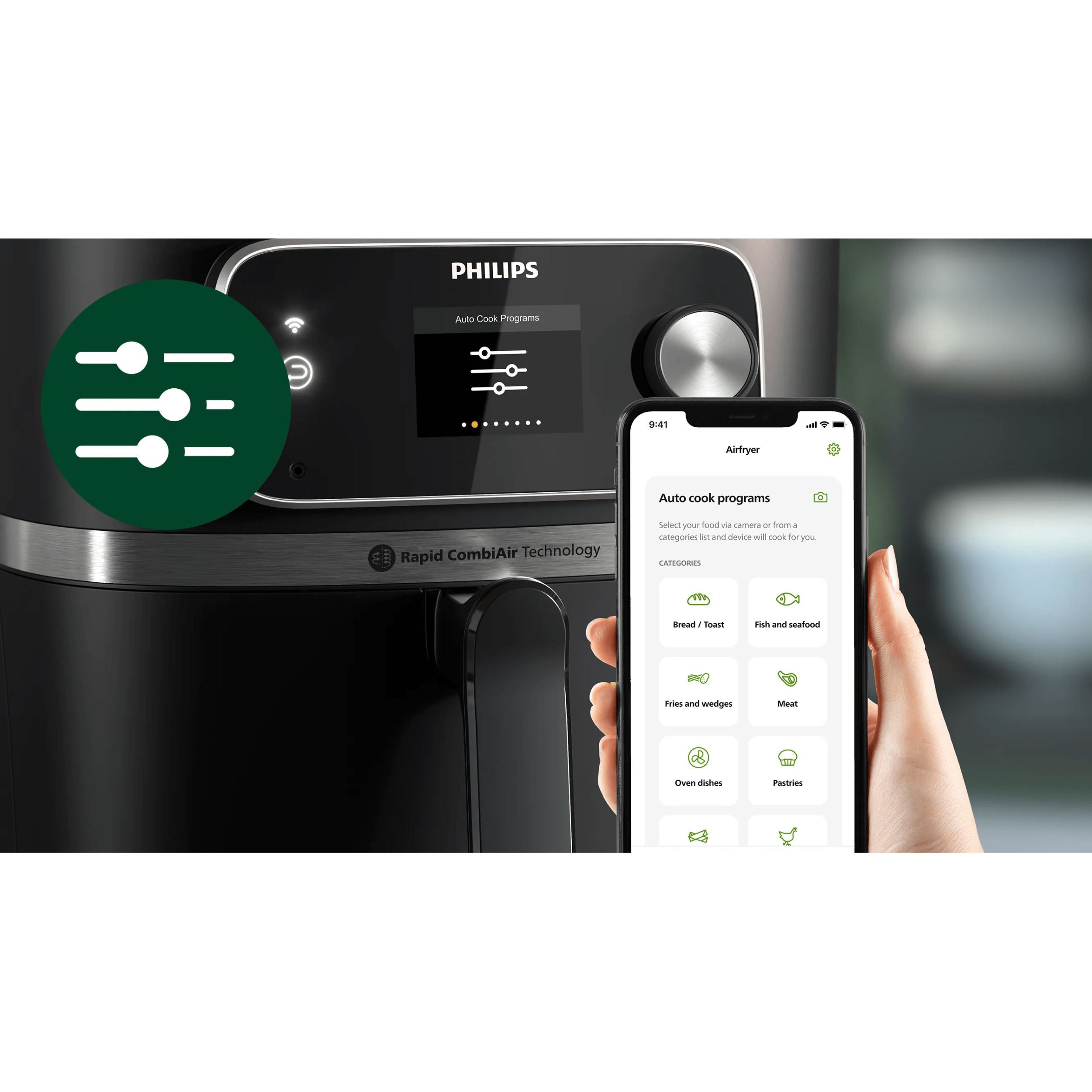 Friteuză cu aer cald Philips AirFryer Combi Seria 7000 HD9880/90, 8.3l, Termometru pentru alimente