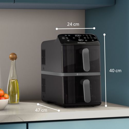 Friteuză cu aer cald Philips Vertical Duo AirFryer Seria 4000 NA460/00, 2 coșuri