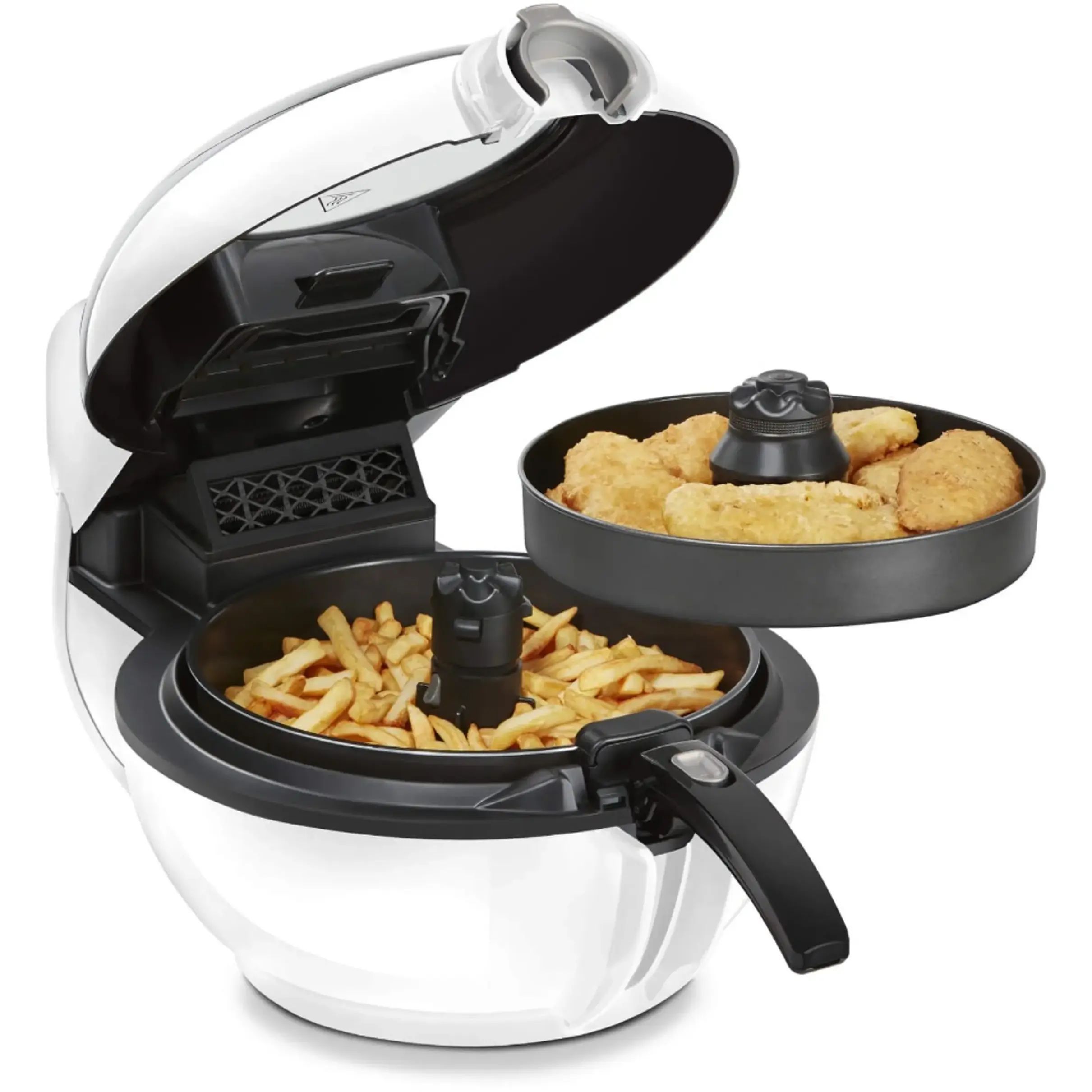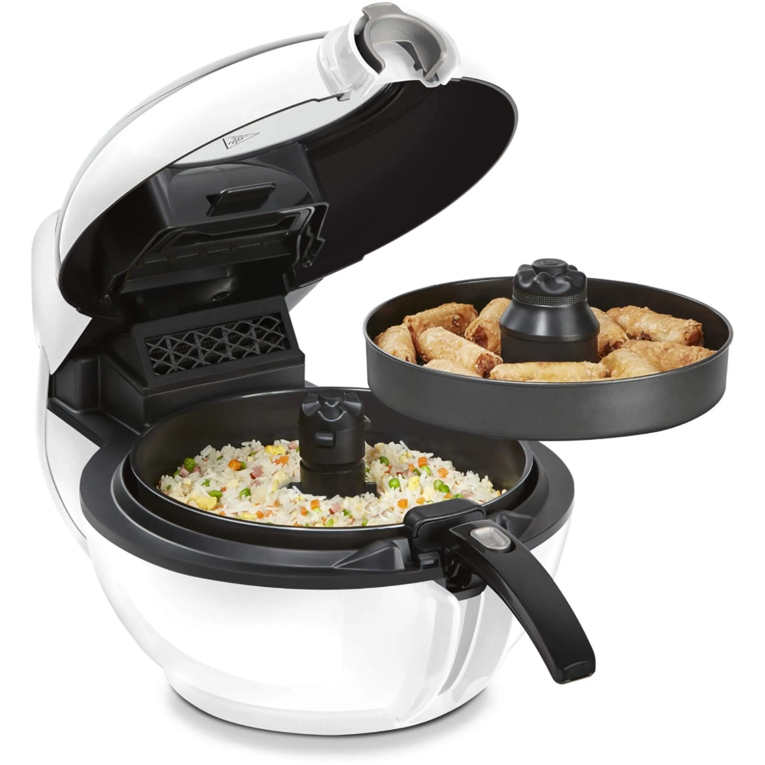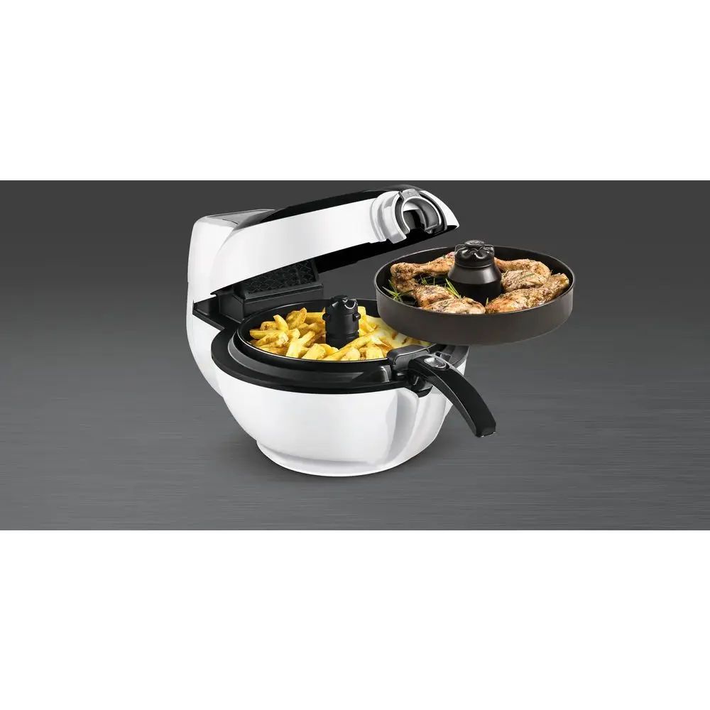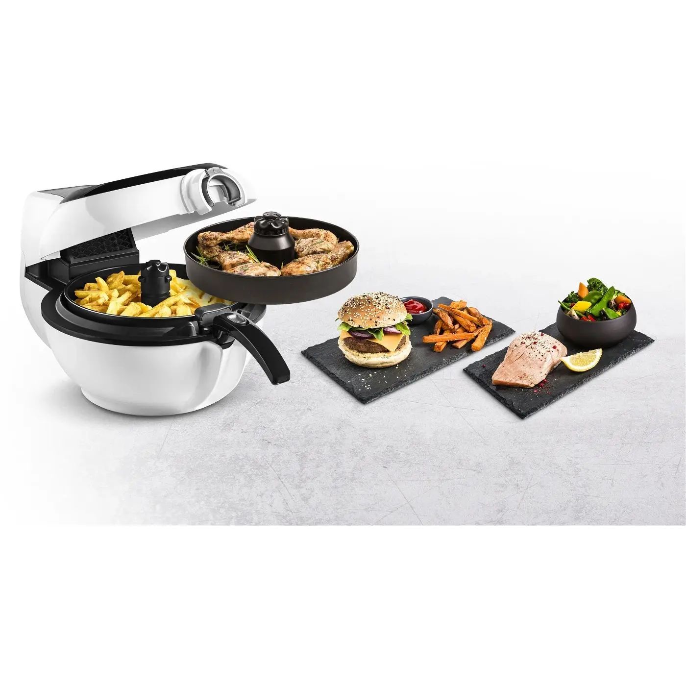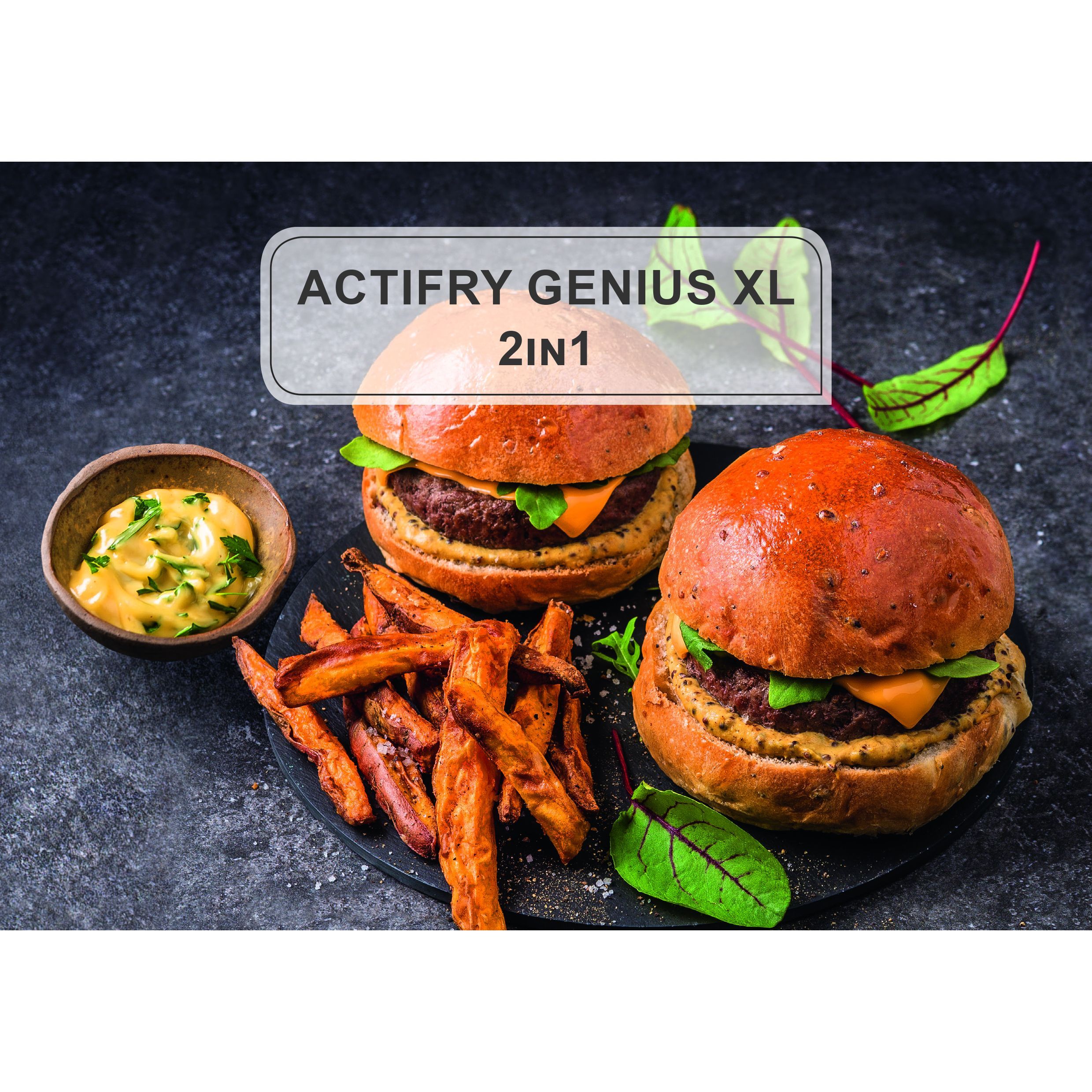 Revoluționați modul în care gătiți, cu friteuza sănătoasă ActiFry Genius XL 2 în 1. Singura friteuză cu aer care gătește 2 feluri delicoase de mâncare dintr-o singură mișcare datorită celor 2 zone separate de gătit. Cu tehnologia sa unică ActiFry, profitați de bol pentru a găti cartofi prăjiți crocanți delicioși. Între timp, folosiți tava pentru a găti fripturi suculente sau fileuri fragede de somon.