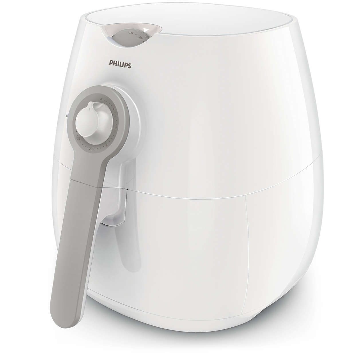 Prăjire sănătoasă cu tehnologia Rapid Air. Utilizând tehnologia Rapid Air, Airfryer circulă aerul fierbinte în jurul unui coş de gătit din plasă metalică, care necesită puţin ulei sau deloc pentru prăjire, coacere şi prepararea la grătar. Designul în formă de stea de mare de la baza Airfryer facilitează circulaţia aerului, asigurând o gătire uniformă a alimentelor preferate.