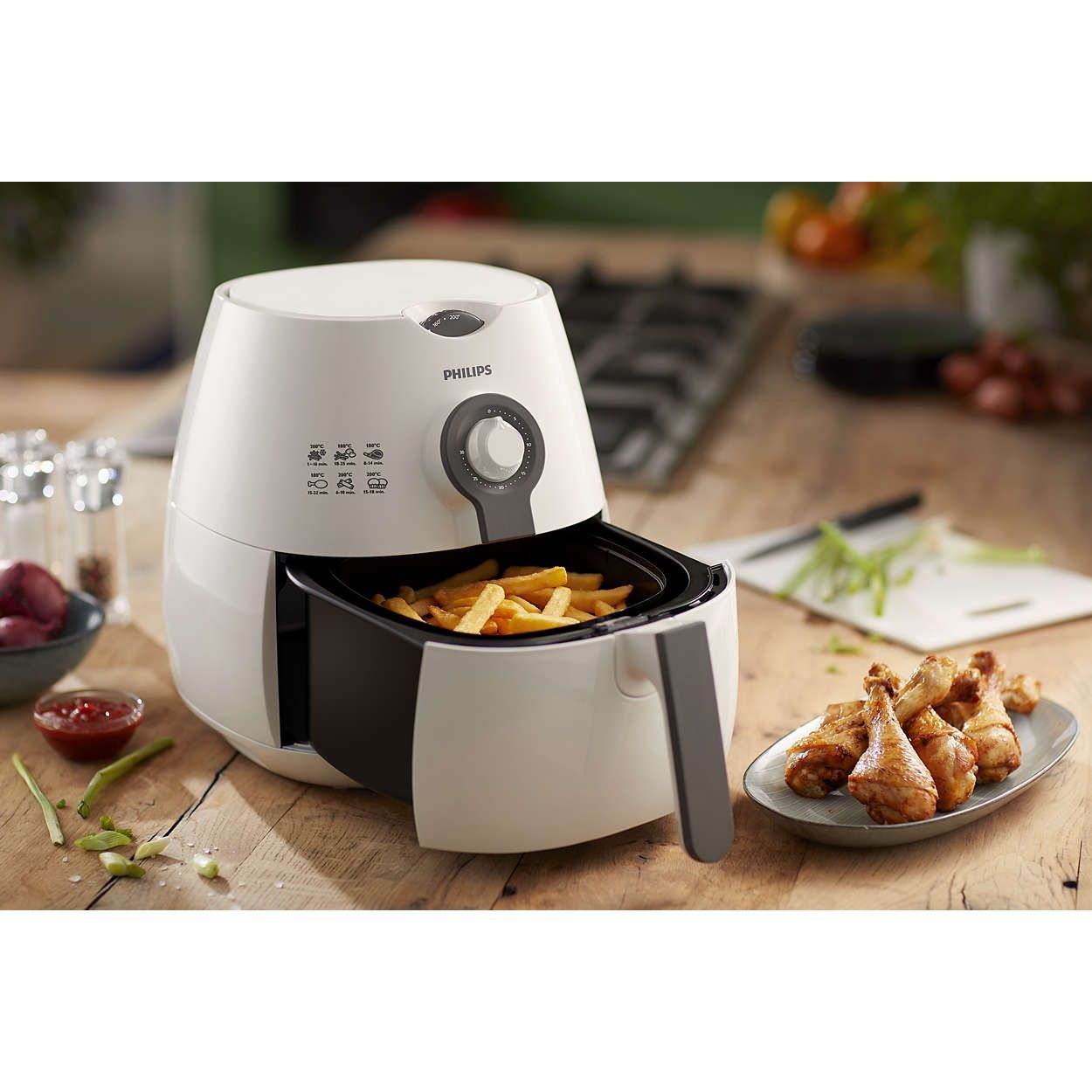 Cu Airfryer poţi prăji, găti pe grătar, rumeni şi chiar coace. Fiind o soluţie extraordinară pentru prăjire, tehnologia inovatoare Rapid Air de la Philips Airfryer îţi permite, de asemenea, să pregăteşti pe grătar, să coci şi chiar să rumeneşti felurile tale favorite pentru o soluţie integrată pentru toate preparatele tale.