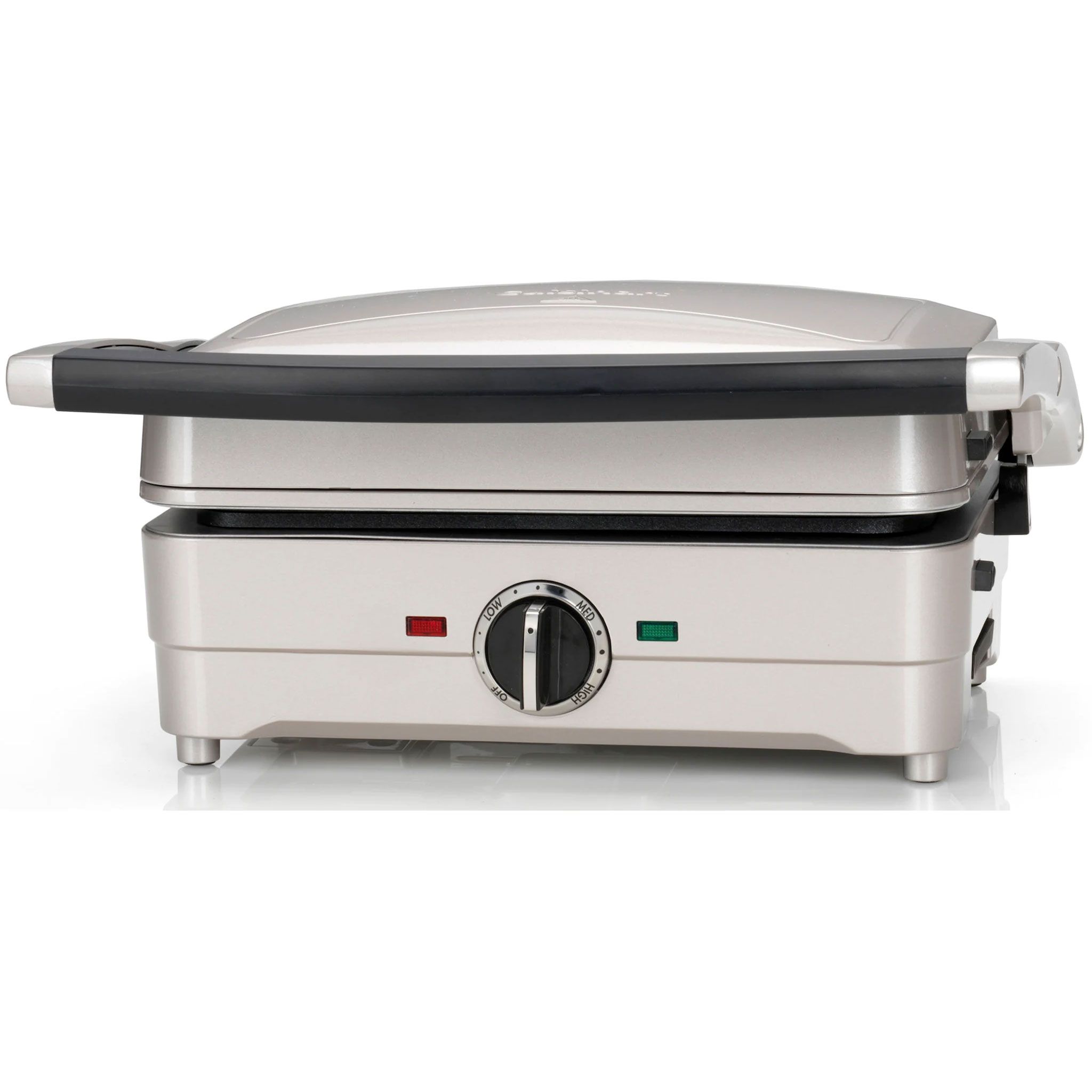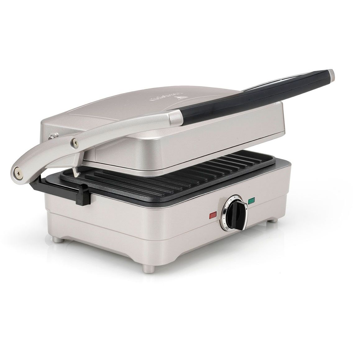 Gratarul electric 3 in 1 Cuisinart este un aparat de bucatarie versatil. Este ideal pentru a pregati mesele si gustarile rapid si fara efort. La temperatura ridicata de 210˚C puteti praji fripturile in doar cateva minute. Dar cu diferite setari de temperatura, aveti si optiunea de a prepara peste si legume la o temperatura mai scazuta. Fiind parte a colectiei Cuisinart Style, arata grozav pe blatul de bucatarie, dar este si suficient de compact si usor pentru o depozitare in dulapul de bucatarie. Aparatul Cuisinart 3 in 1 include 3 placi detasabile antiaderente interschimbabile pentru gratar, vafe si clatite/oua, sigure pentru curatare in masina de spalat vase. Placile pentru gratar pot fi folosite pentru a pregati carne, peste si legume, dar si pentru a face panini si multe altele. Balamaua flotanta permite placii superioare sa se sprijine pe alimente, incalzind-o din ambele parti si oferindu-va rezultate excelente intr-un timp scurt. Folositi placile de vafe pentru a pregati vafe dulci sau sarate, cu o crusta aurie si interior moale si aerisit. Perfect pentru a face un mic dejun gustos sau deserturi dulci. Cu placile pentru clatite puteti face clatite usoare si aerisite in cateva minute. De asemenea, pot fi folosite pentru mini-tortilla, mini quiche-uri sau mini-pizza. Gratarul are integrata si o tava de picurare, care colecteaza excesul de grasime.