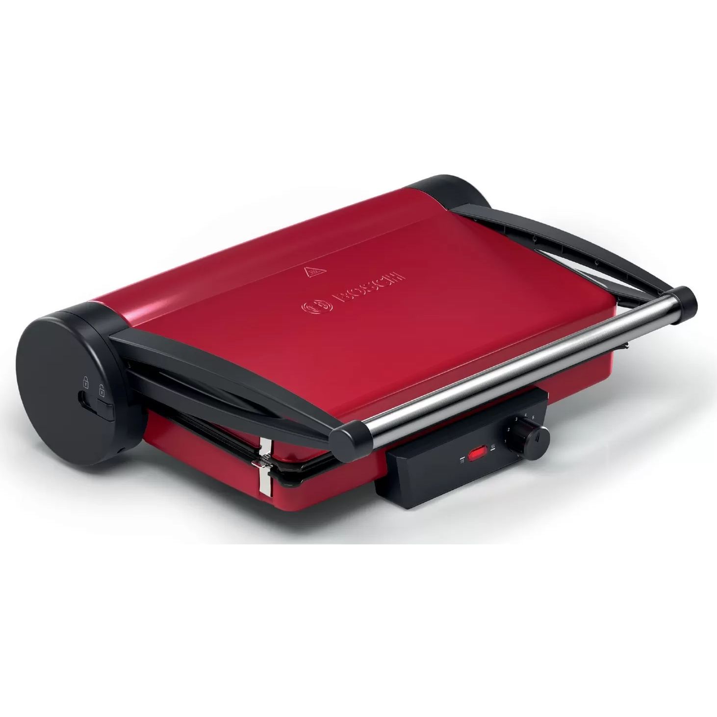 Grătar electric BOSCH TCG4104, 2000W, 5 nivele, Corp inox, Plăci grill antiadezive detașabile aluminiu 32.8x23.8cm, Două tăvițe, Termostat reglabil, Păstrare la cald, Depozitare verticală, Red Anthracite