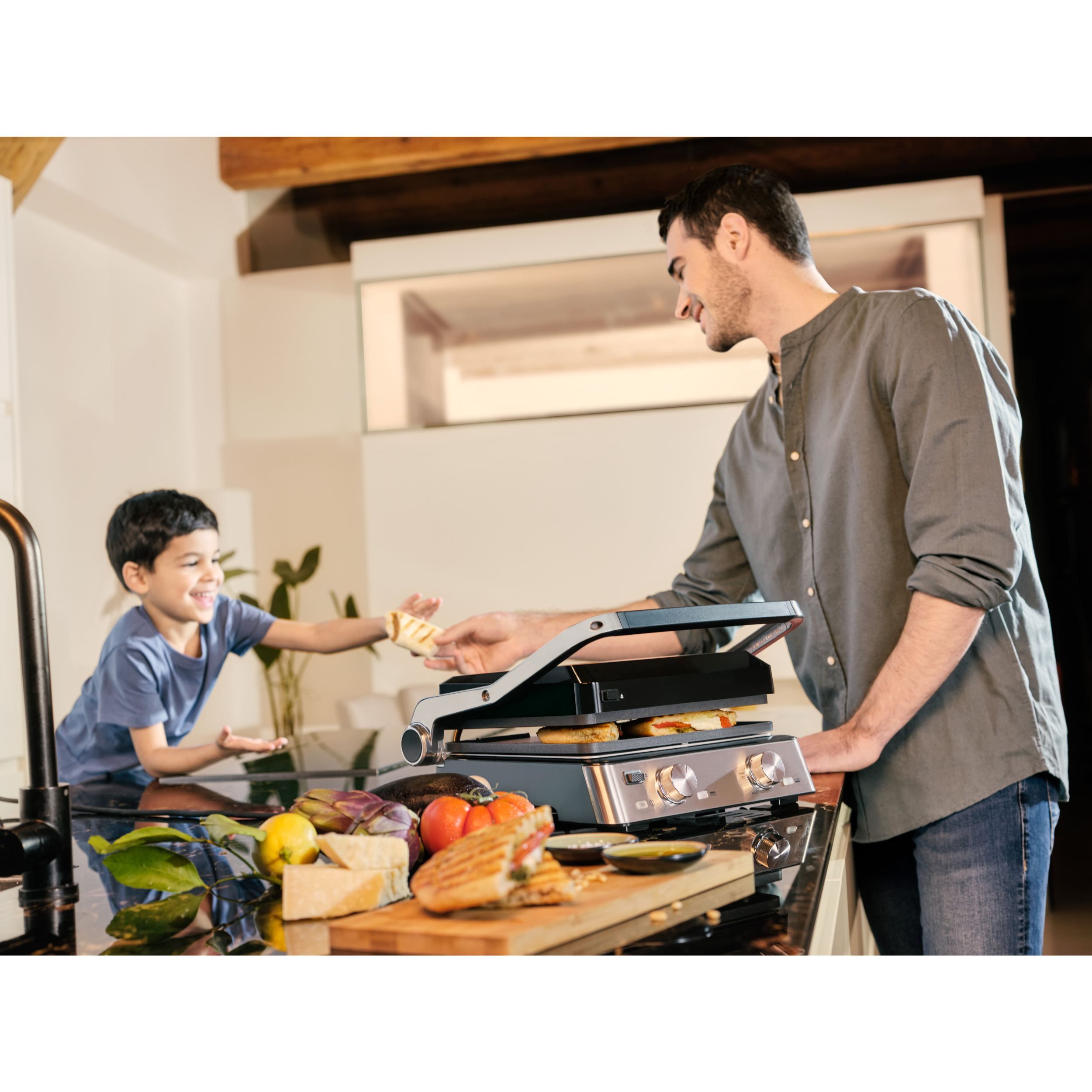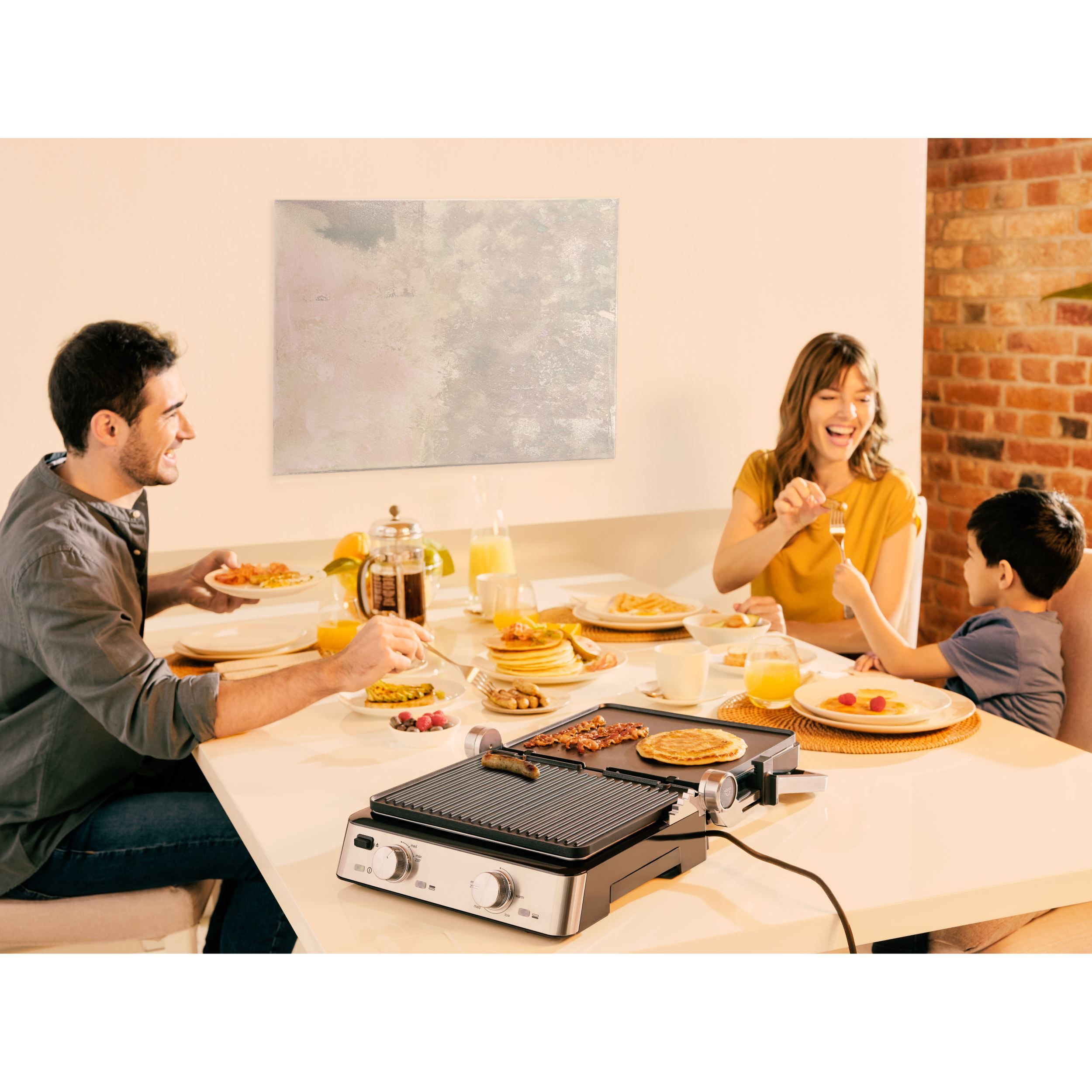 Datorită combinației inteligente dintre cele două plăci diferite și cele trei moduri flexibile de gătit,te poți bucura de o versatilitate nelimitată. Experimentează rezultate perfecte la grătar pentru micul dejun, prânz, cină și gustări.