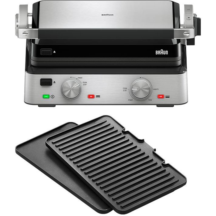 Elementele de încălzire încorporate garantează o încălzire mai rapidă și uniformă. Iar datorită termostatelor independente, poți regla temperatura fiecărei plăci separat pentru a găti două tipuri de alimente simultan.