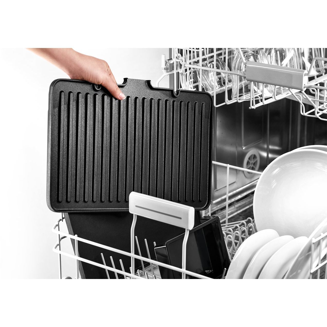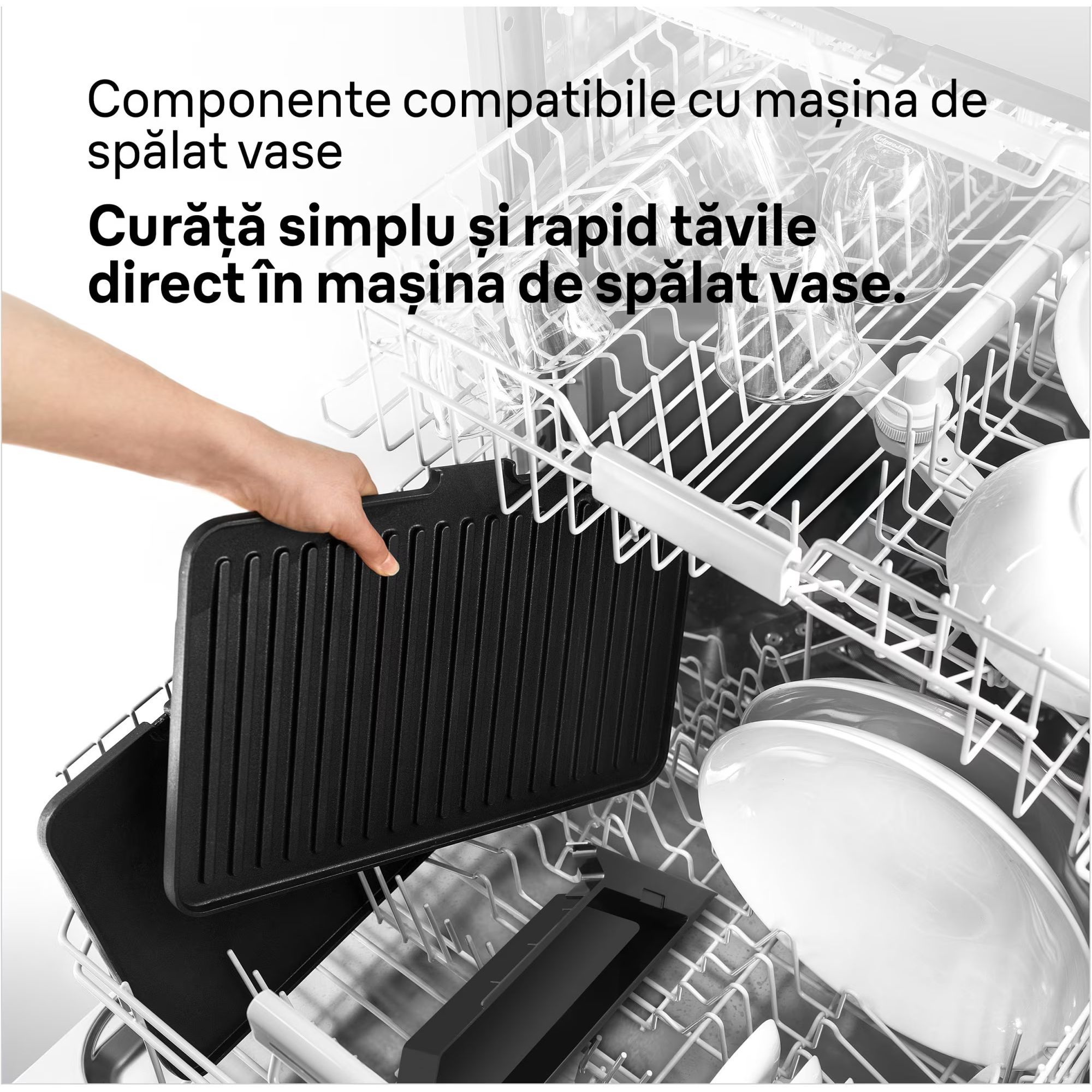 Piese detașabile care pot fi spălate în mașina de spălat vase. Tăvile și tava de grăsime pot fi spălate în mașina de spălat vase.