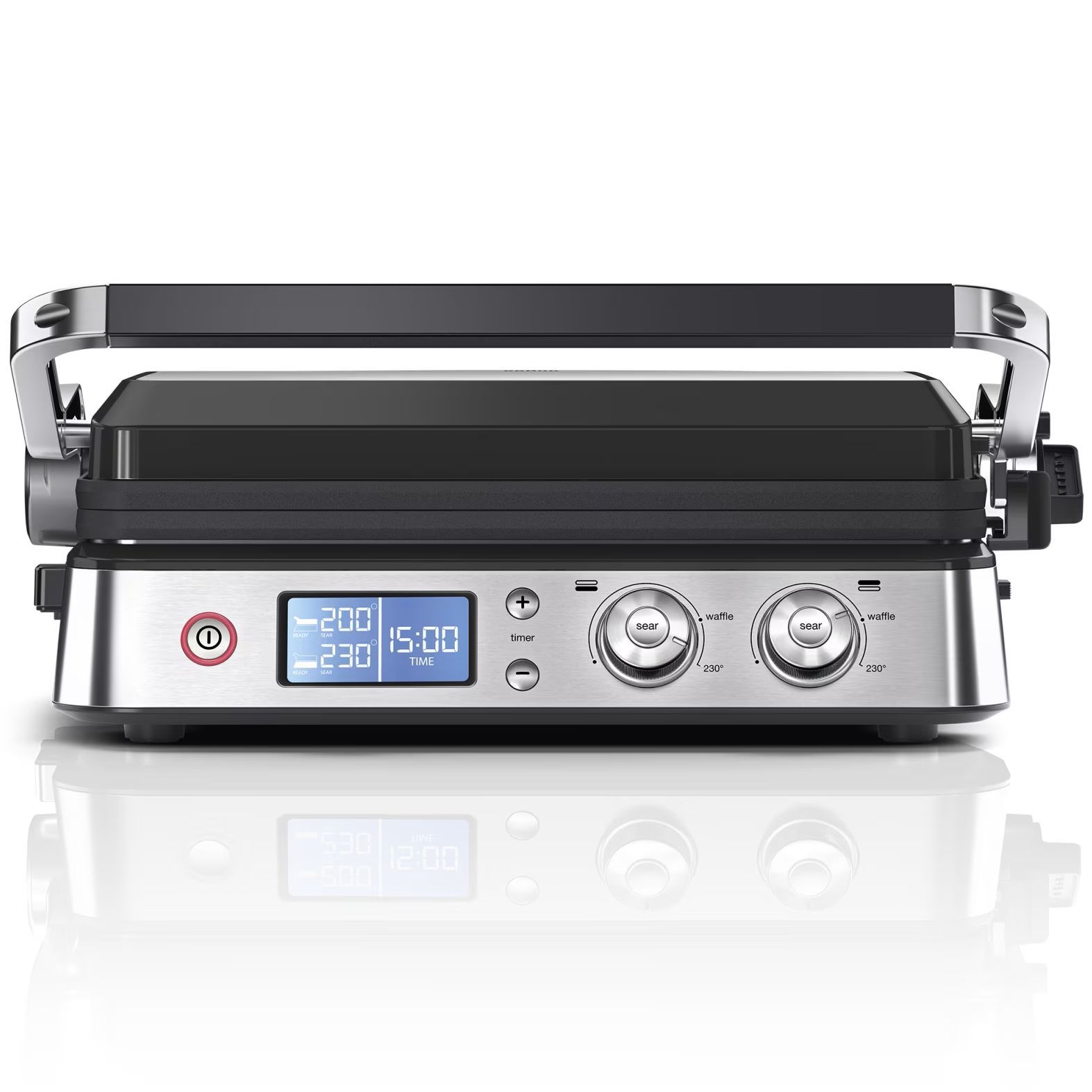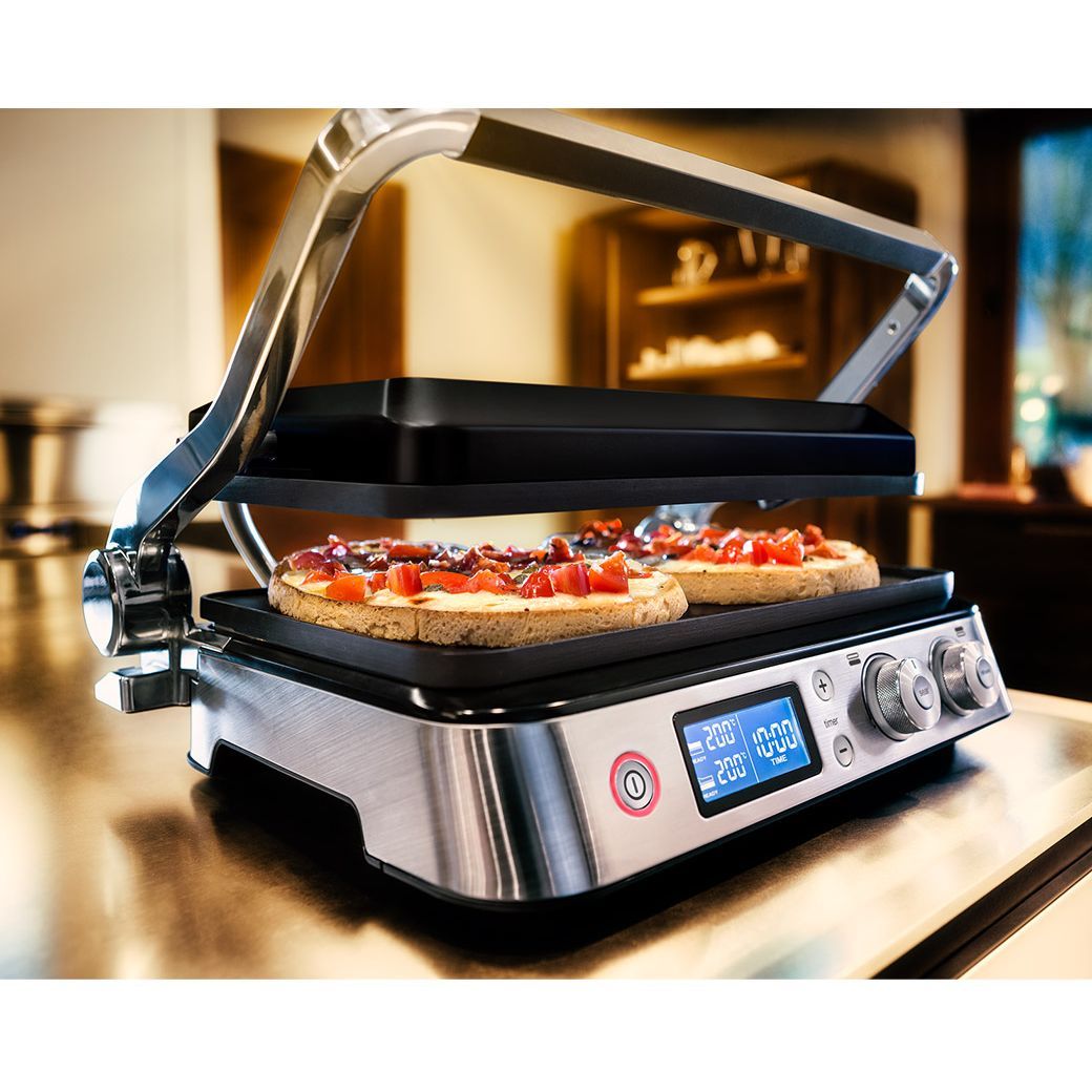 Experiența supremă a grătarului. Elementele de încălzire încorporate garantează o încălzire uniformă și mai rapidă. Iar datorită termostatelor independente, poți regla temperatura fiecărei tăvi separat pentru a găti două tipuri de alimente simultan.