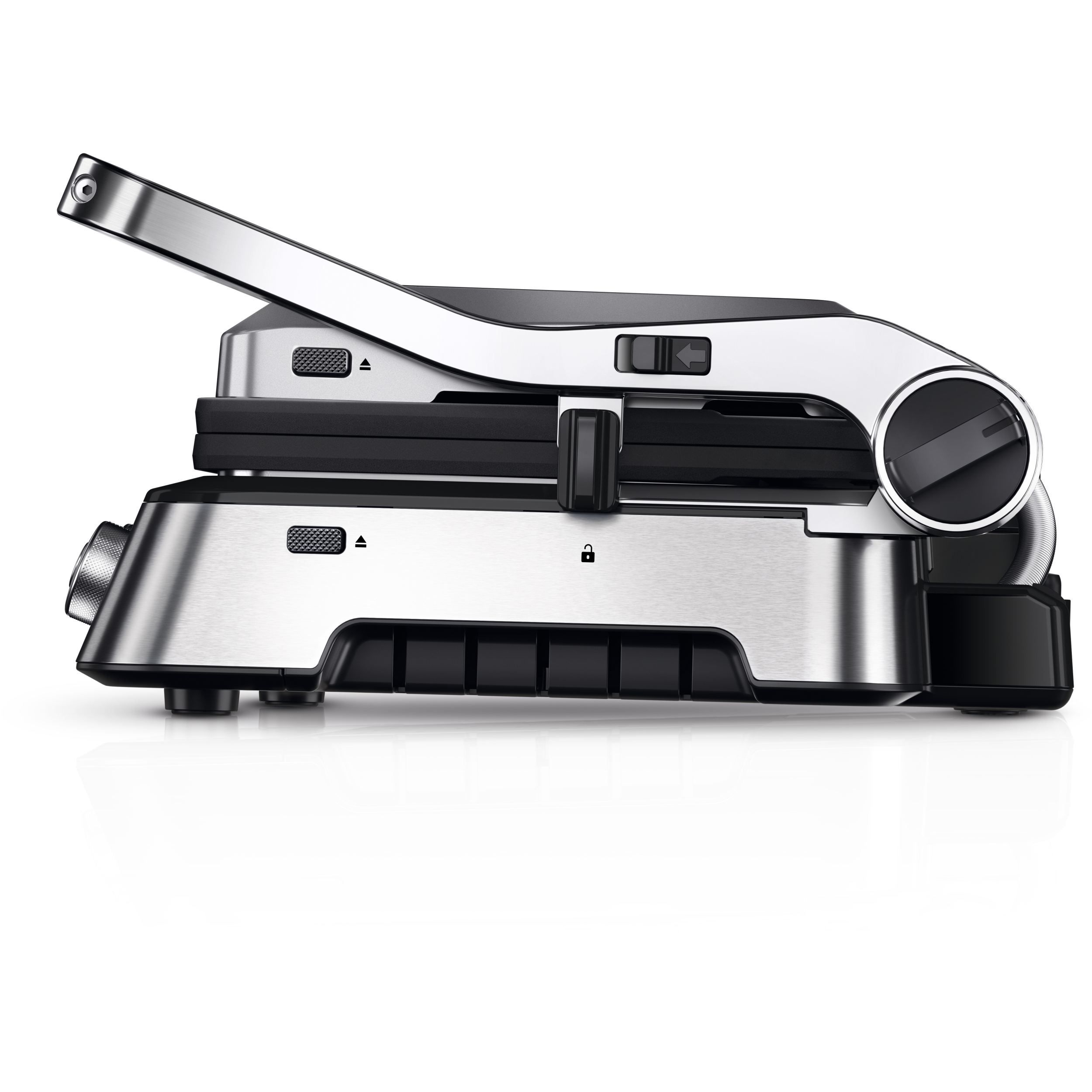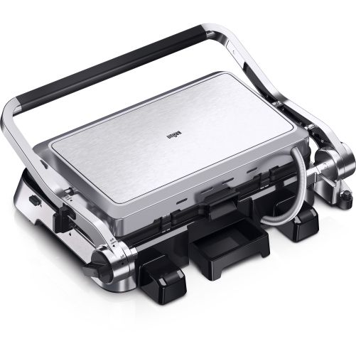 Versatilitate maximă datorită modului flexibil de poziționare a grătarului:deschis,tip cuptor sau în direct contact cu alimentele.