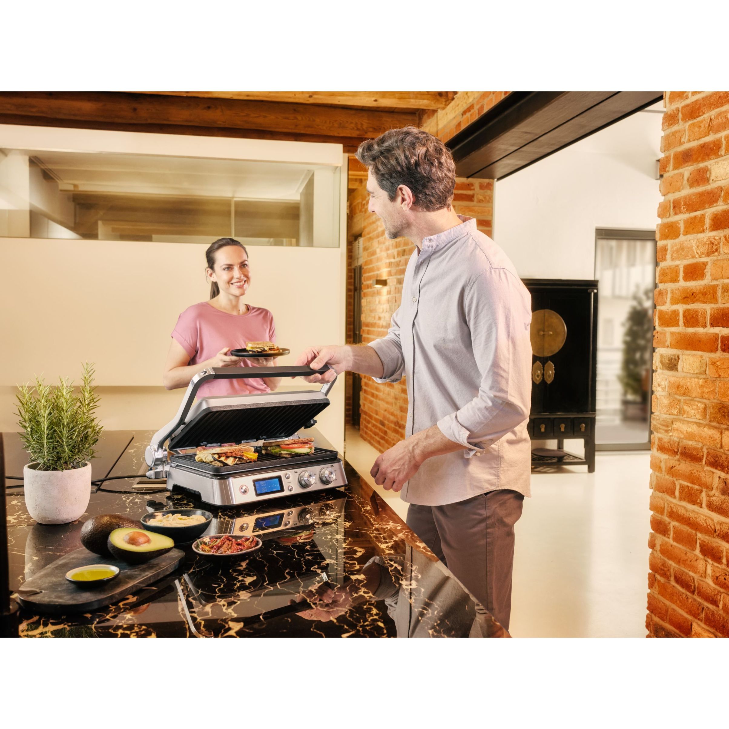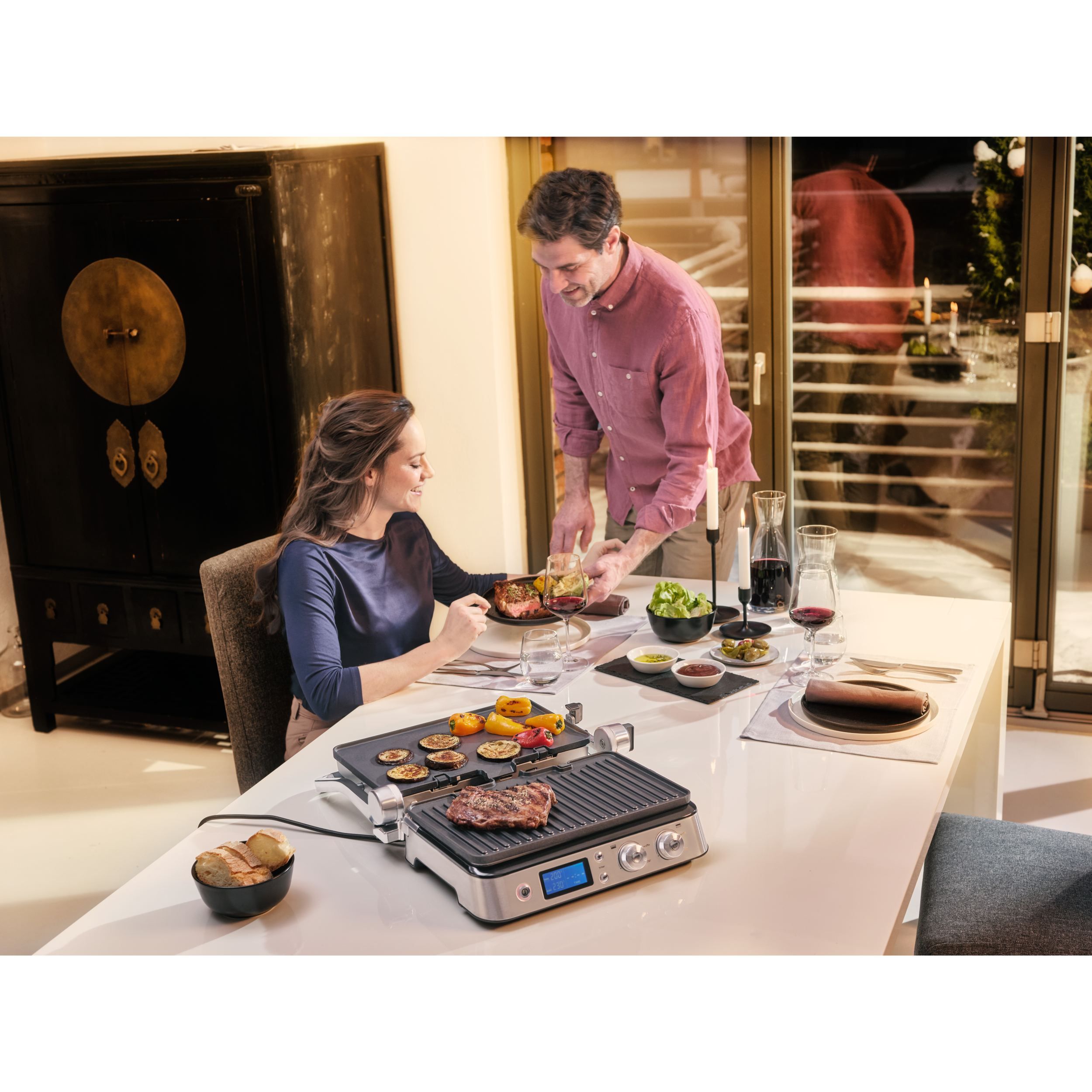 Elementele de încălzire încorporate garantează o încălzire uniformă și mai rapidă. Iar datorită termostatelor independente, poți regla temperatura fiecărei plăci separat pentru a găti două tipuri de alimente simultan.