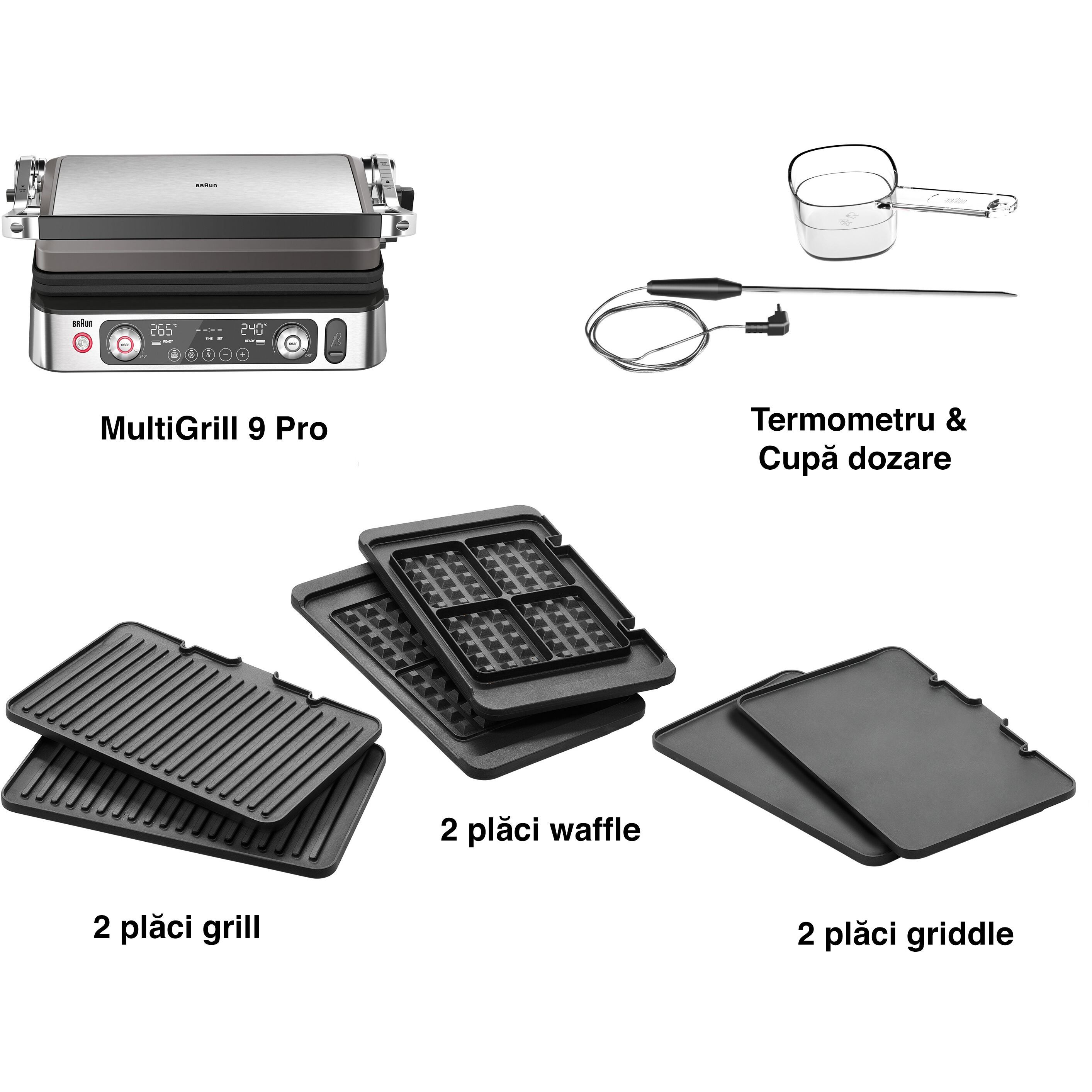 Plăcile și tava de grăsime pot fi spălate în mașina de spălat vase.