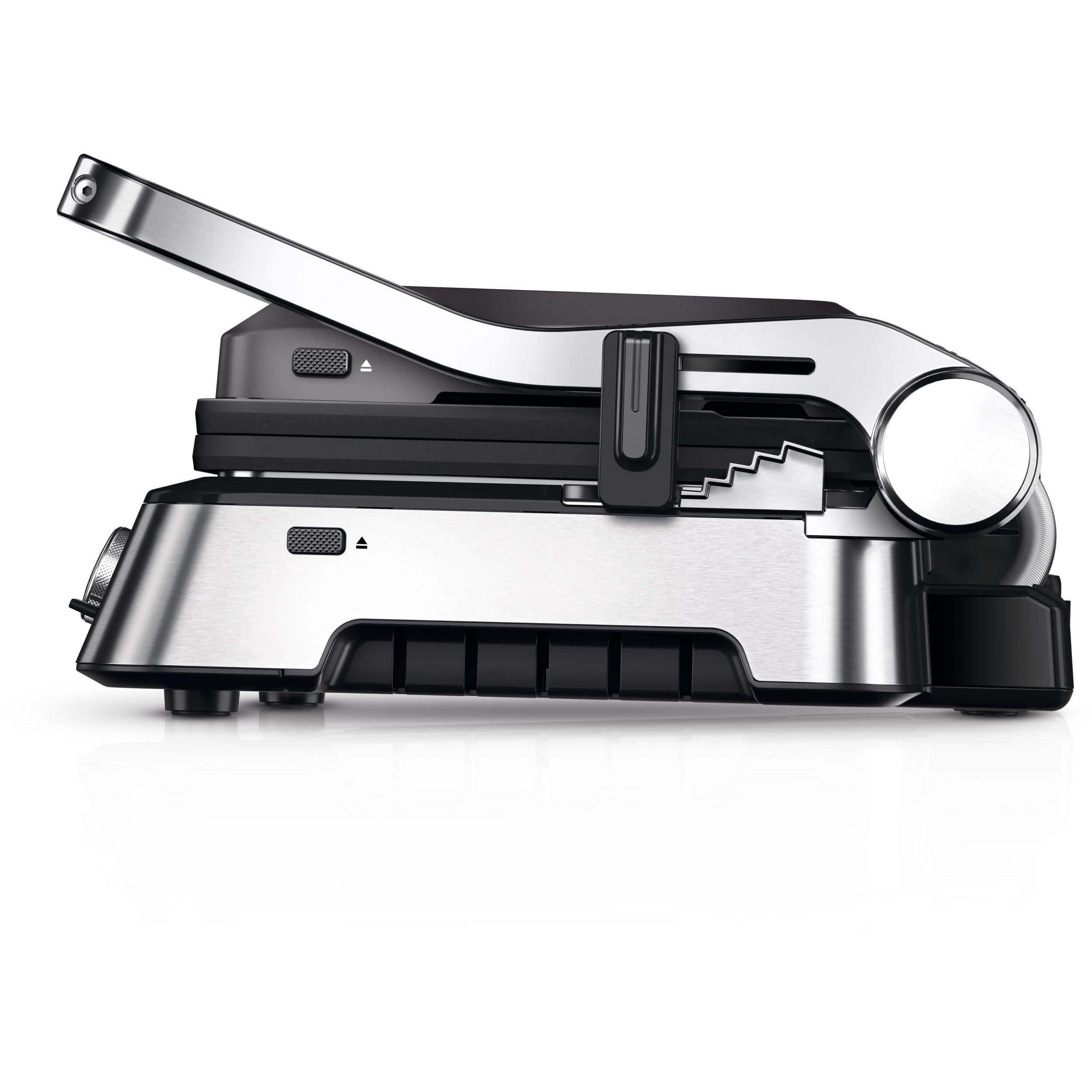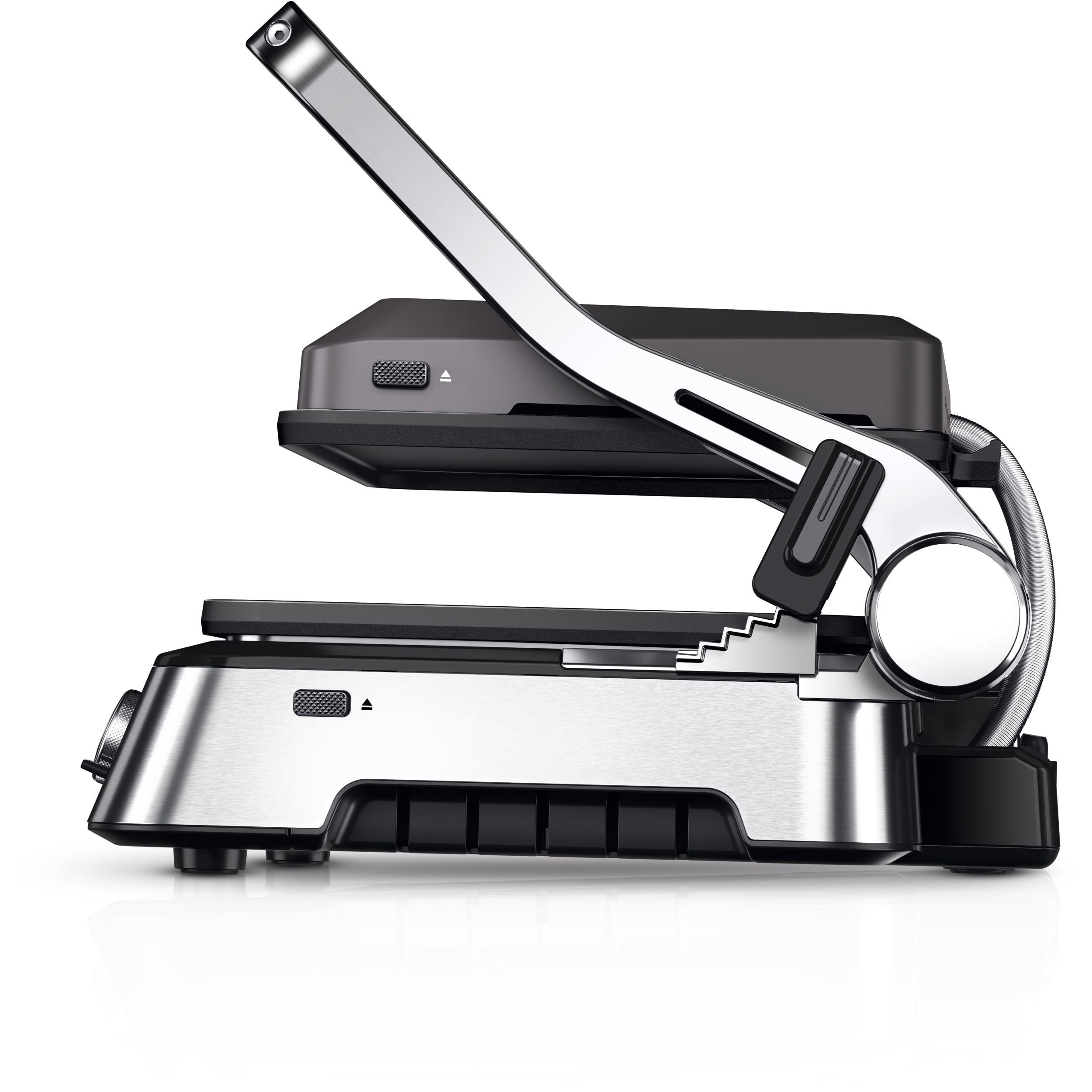 Versatilitate maximă datorită modului flexibil de poziționare a grătarului:deschis,tip cuptor sau în direct contact cu alimentele.