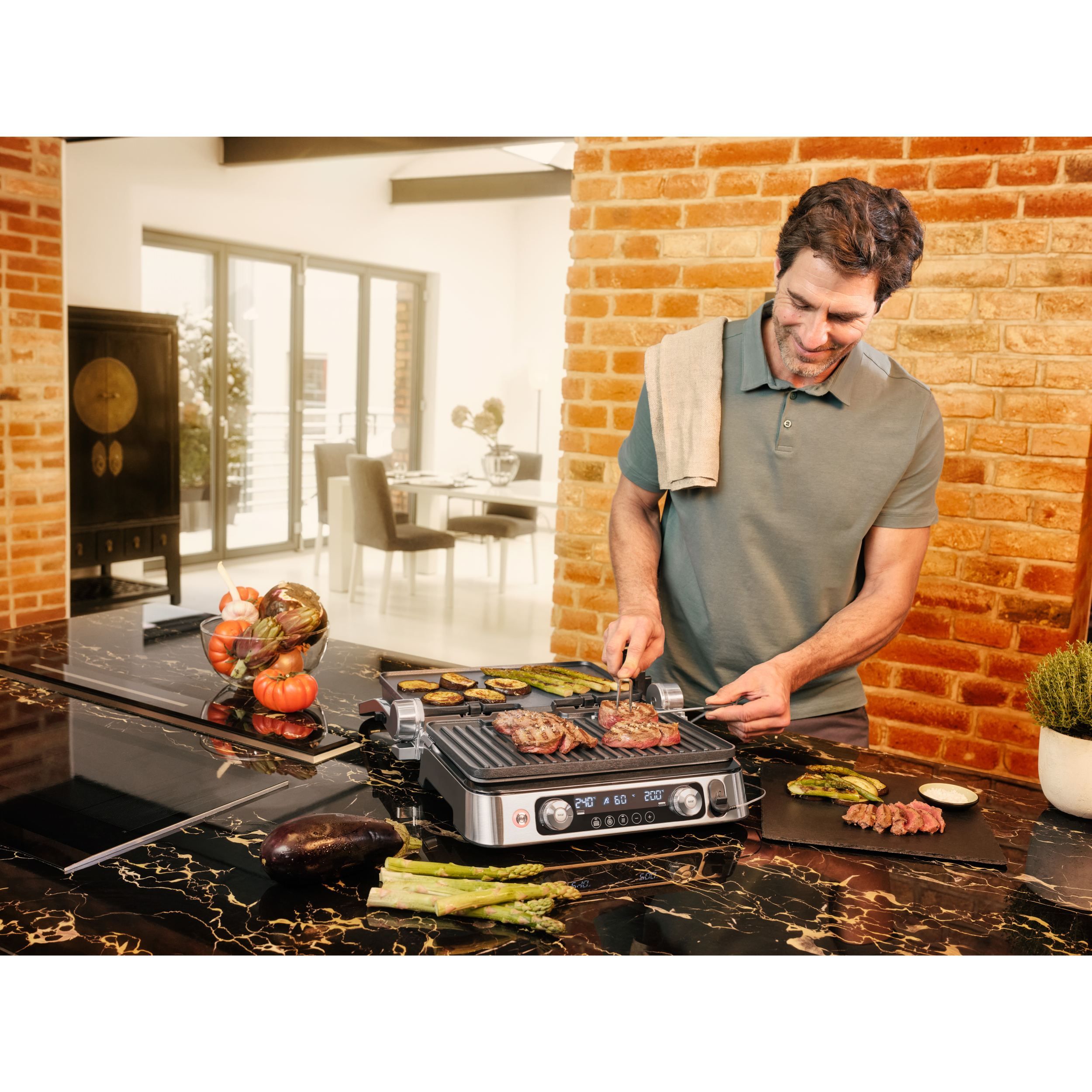 Datorită combinației inteligente a trei seturi de plăci diferite și a trei moduri flexibile de gătit,te vei bucura de versatilitate nelimitată. Experimentează rezultate perfecte la grătar pentru micul dejun, prânz, cină și gustări.