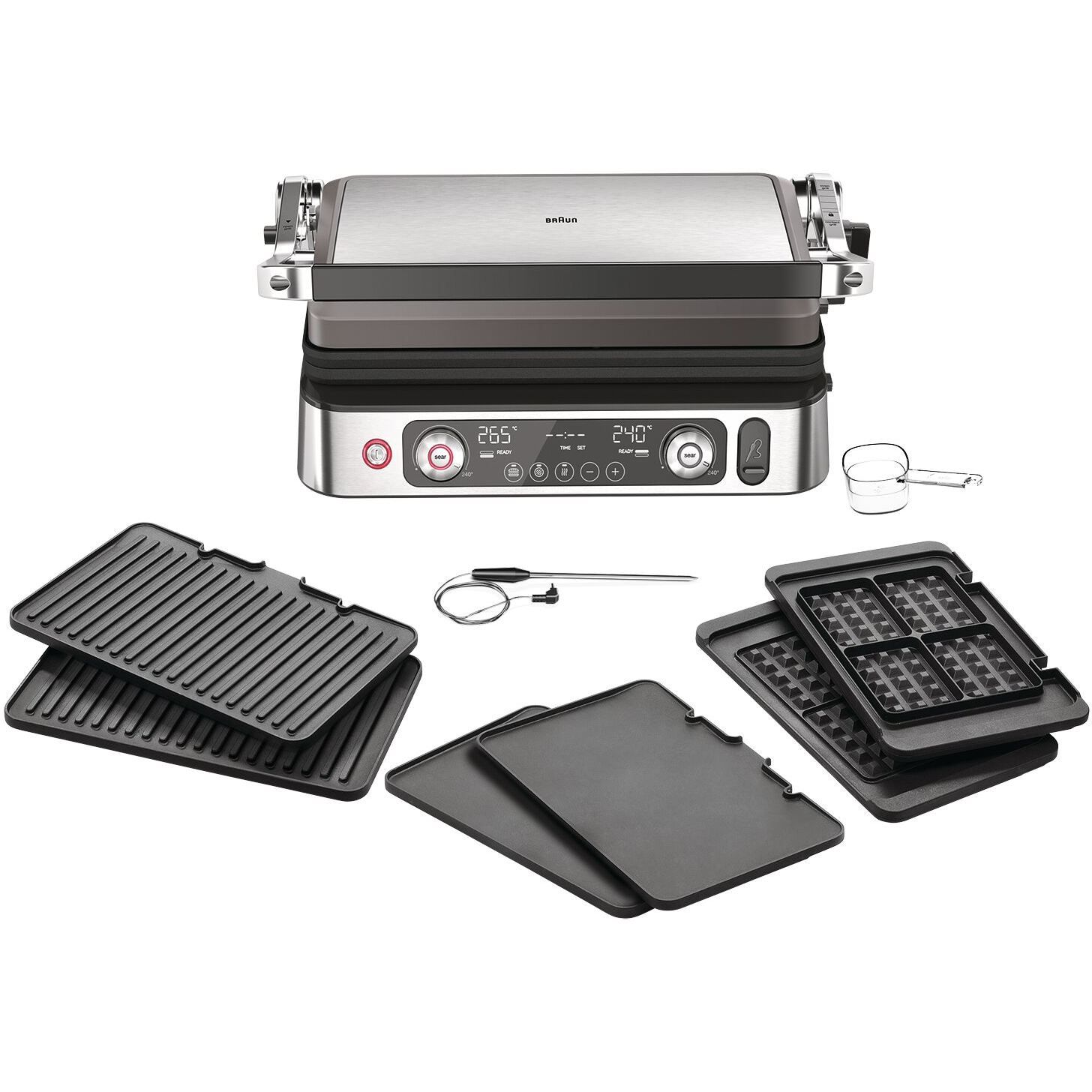Termometrul integrat oferă precizie de 1 grad astfel că te poți bucura de preparatul perfect gătit la grătar - de la mediu la bine făcut.