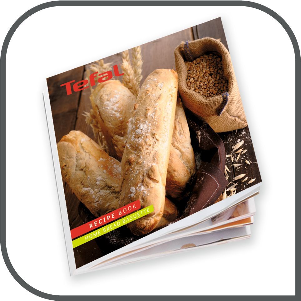 Bucurați-vă de reţete variate şi surprindeți-vă invitaţii de fiecare dată! Inspirați-vă din cartea de reţete inclusă în pachet, aceasta conține rețete dedicate inclusiv rețete pentru baghete.