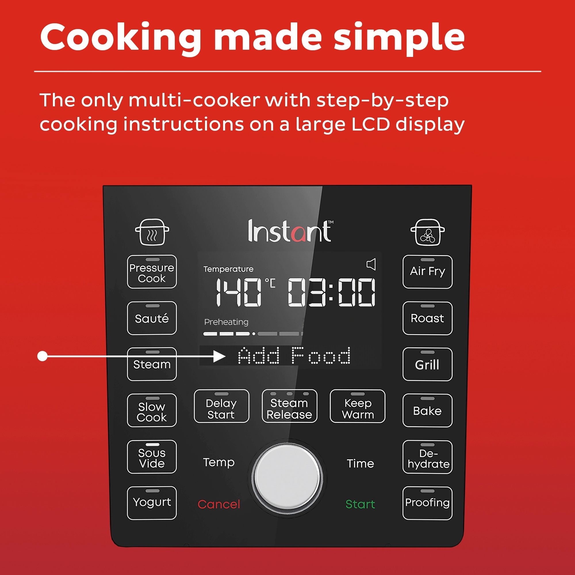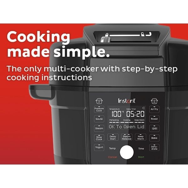 Duo Crisp cu Ultimate Lid este simplu de utilizat datorită afișajului LCD mare care vă ghidează prin programele de gătit și vă permite chiar să știți când să deschideți și să închideți capacul.