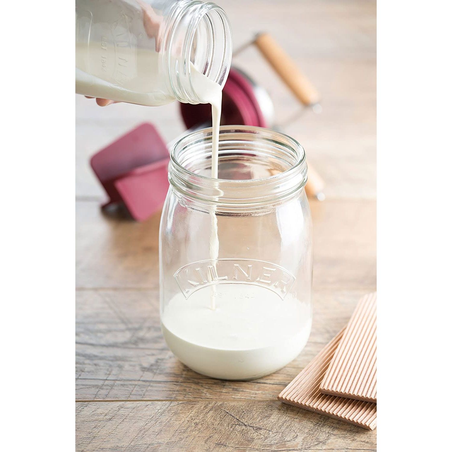 • Strecurați laptele de unt și modelați grăsimea de unt folosind paletele Kilner ® Butter Paddles.