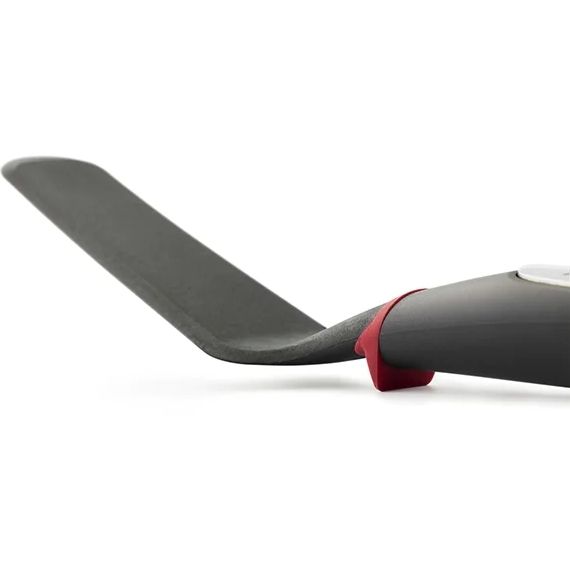 Această spatulă pentru clătite beneficiază de o margine subțire ce va aluneca sub orice tip de clătită sau omletă. Designul inovator oferă confort în folosire și mai multă igienă mulțumită inelului din silicon inovator ce nu permite alunecarea ustensilei pe suprafața vasului de gătire.