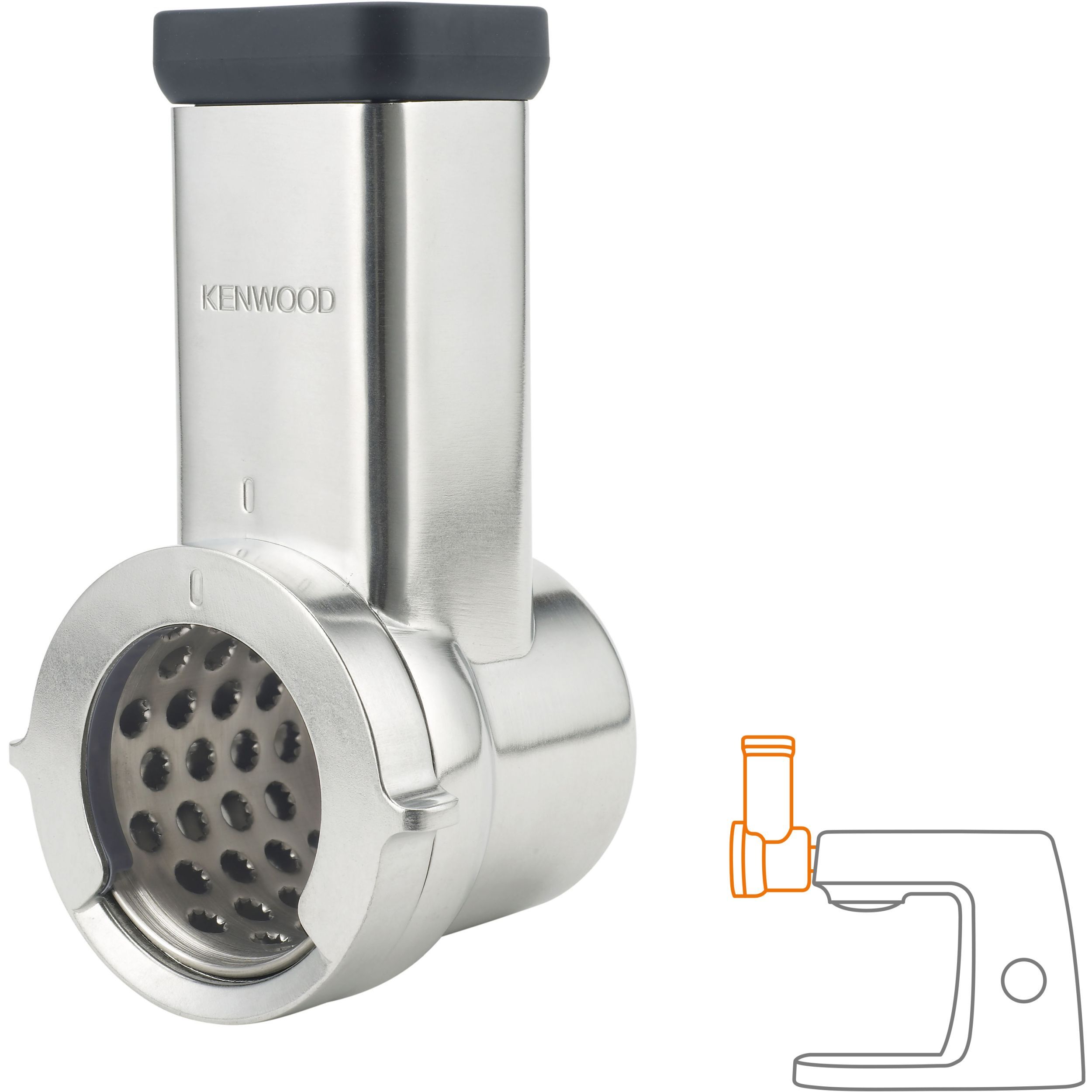 Accesoriul este proiectat fără vas, pentru a permite o acțiune continuă de servire direct în bol sau atunci când aveți cantități mari de pregătit. Acțiunea de rotație lentă a taietorului va menține controlul asupra procesului de maruntire/razuire/feliere, asigurându-va că nu rămâne nimic neprocesat iar ingredientele sunt tăiate exact așa cum va place.
