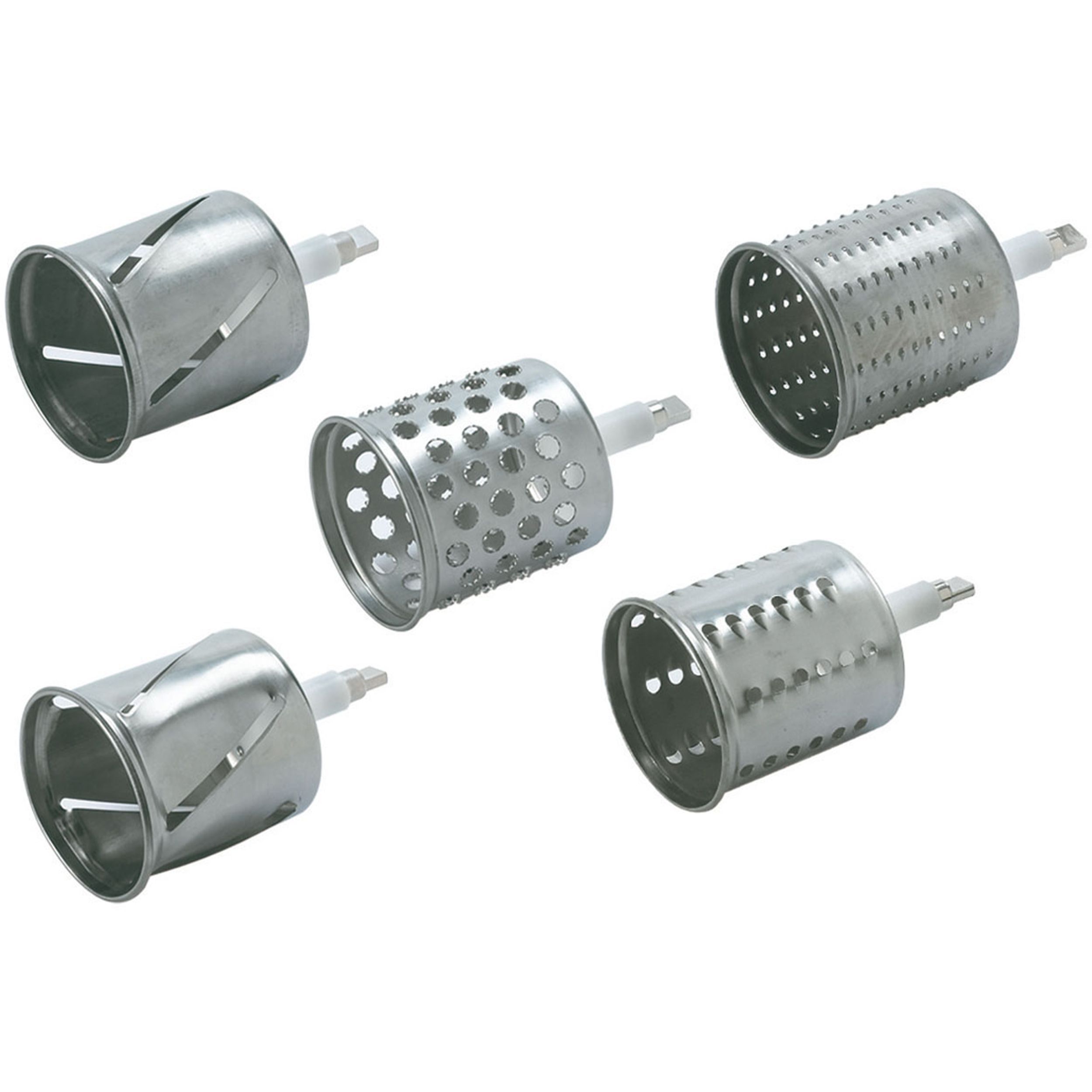 În funcție de preparatul dorit, puteți alege dintre cei 5 tamburi incluși în pachet, ideali pentru maruntire, feliere sau razuire: