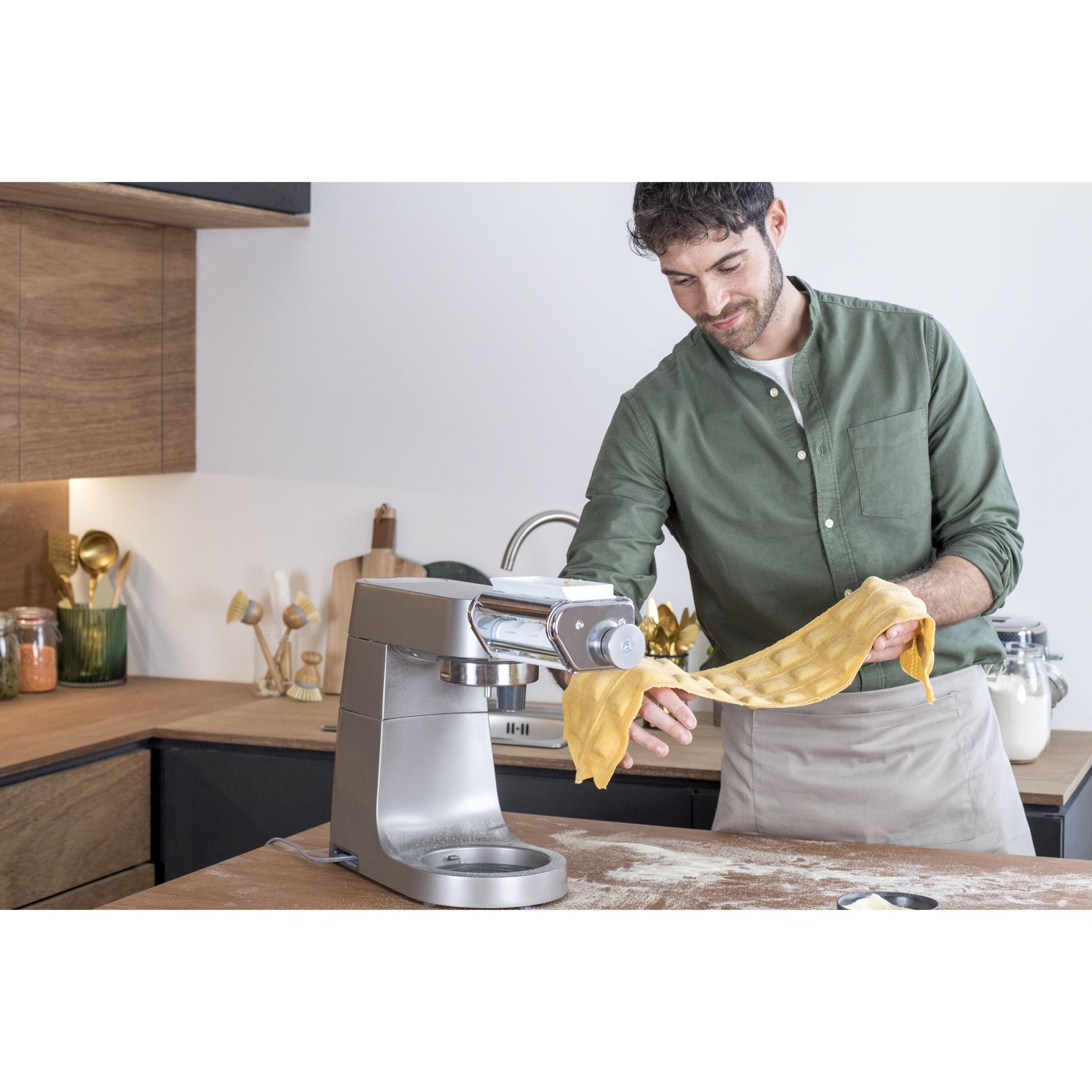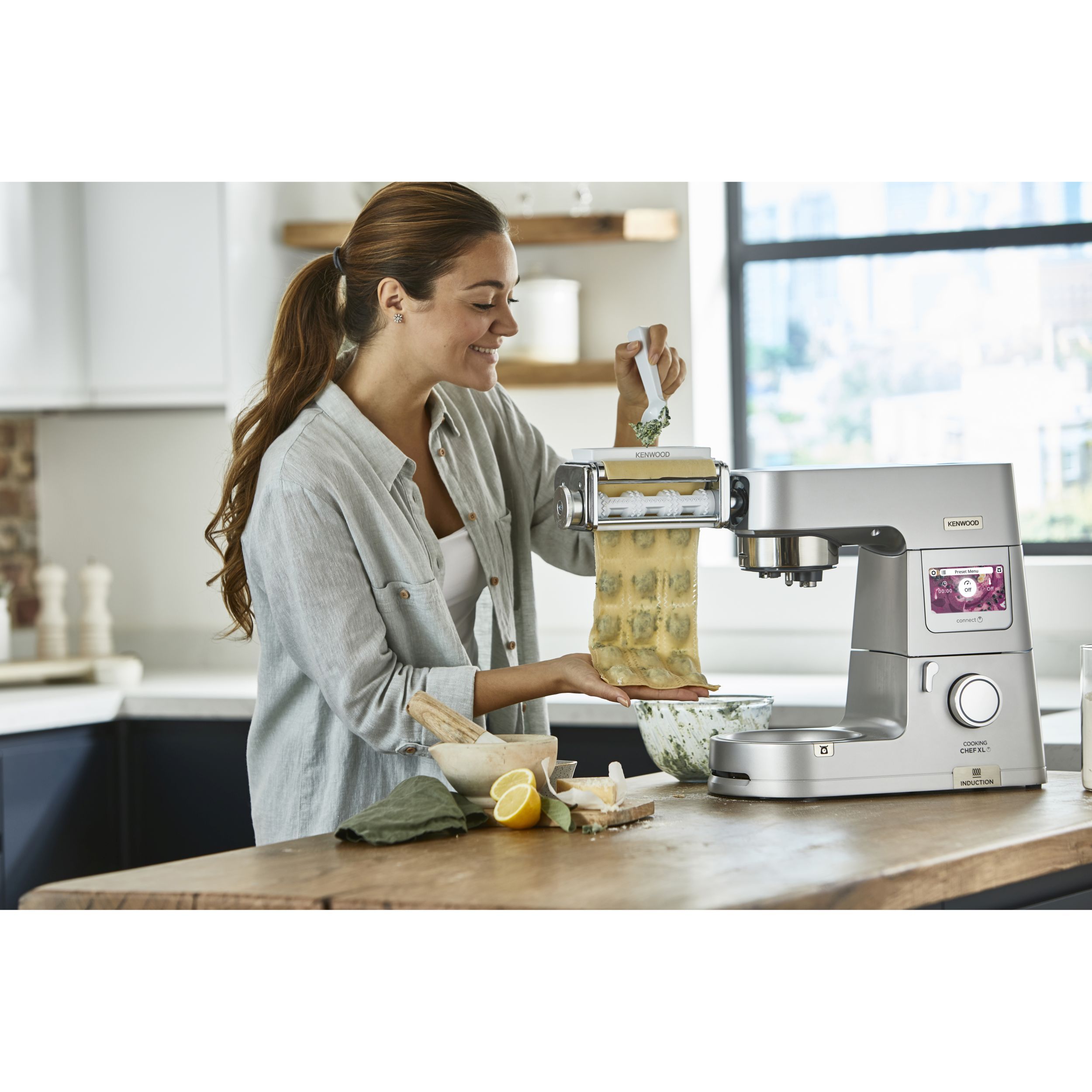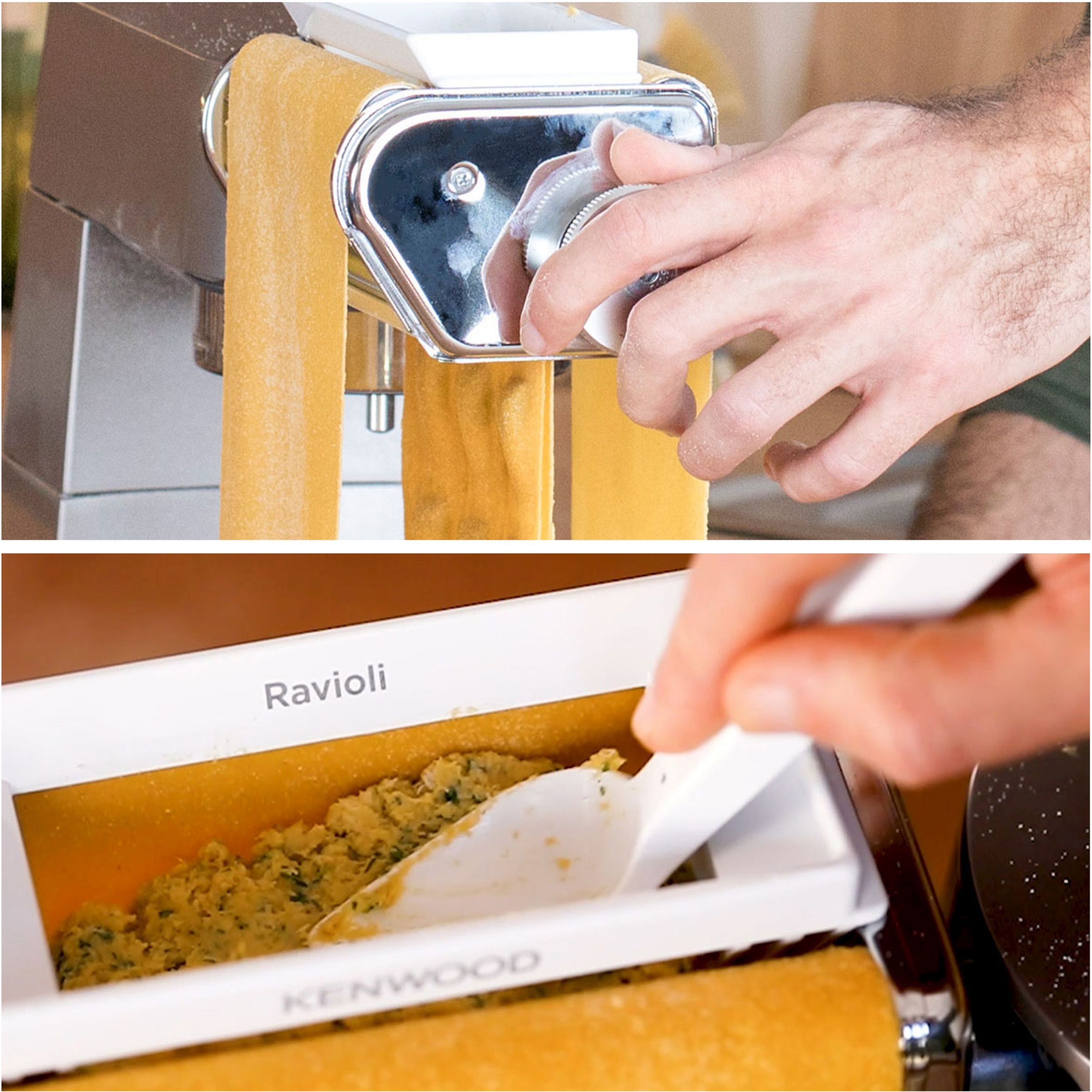 Crearea propriilor ravioli umplute delicioase, dulci sau sărate, este simplă cu accesoriul KENWOOD Ravioli Maker. Pur și simplu amestecați umpluturile alese, umpleți pâlnia și creați pachete de ravioli gustoase. Veți avea nevoie de accesoriul rolă lasagna pentru a rula mai întâi pastele până la grosimea dorită.