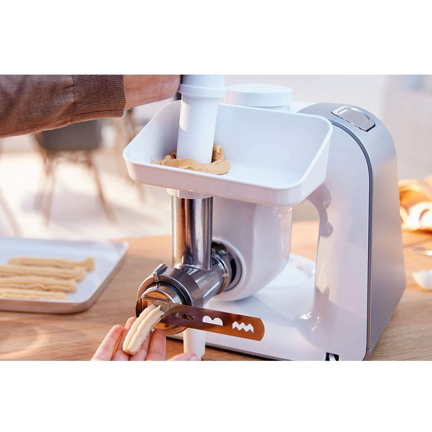 Accesoriul poate fi atașat cu ușurință la mașina de tocat, pregătirea prăjiturii fiind apoi facilă. Materialul este durabil, robust, sigur pentru alimente iar după utilizare poate fi curățat rapid.