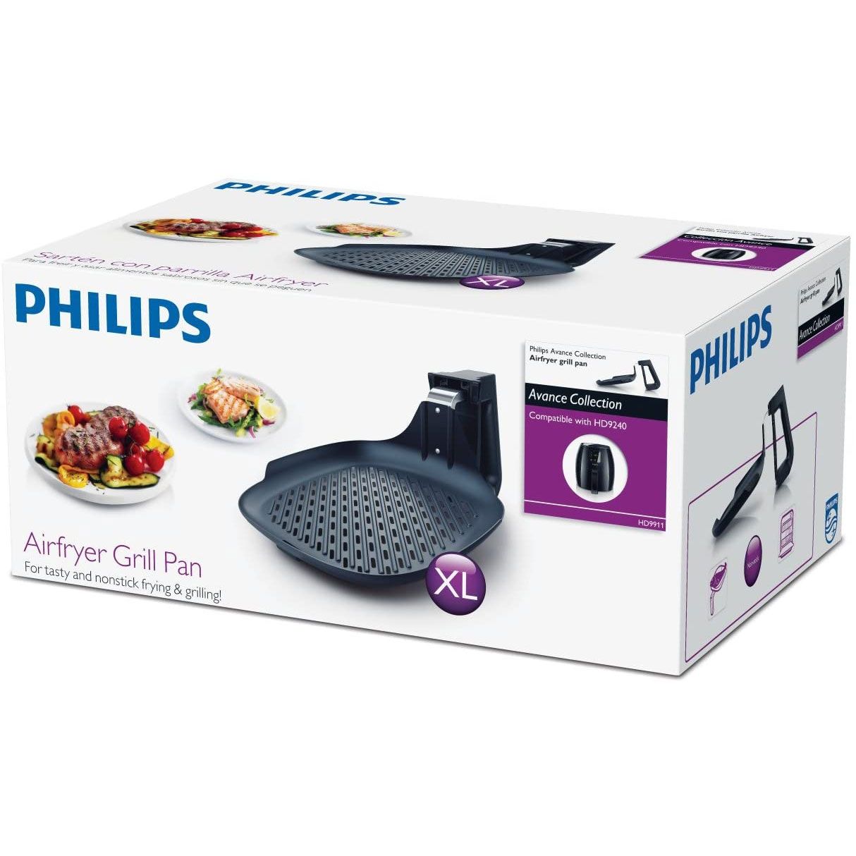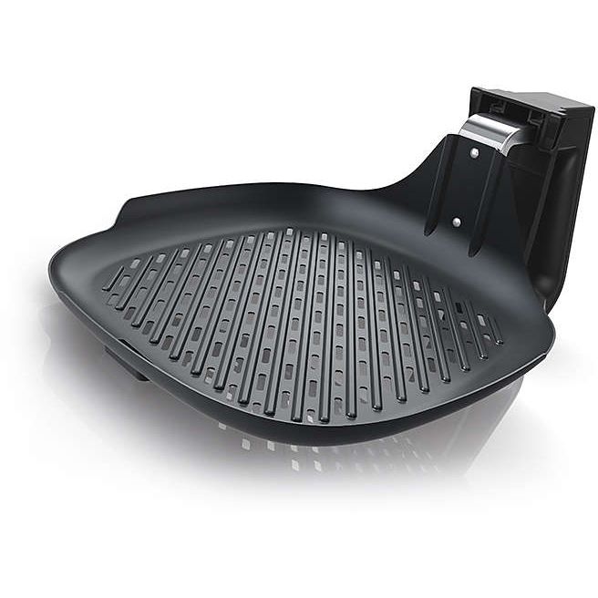Tigaie cu grătar pentru Airfryer. Obţine peşte, carne şi legume preparate la grătar perfecte şi mai sănătoase, graţie tehnologiei Rapid Air combinate cu suprafaţa perforată unică cu protuberanţe tipice! Graţie suprafeţei neaderente, alimentele se desprind fără efort şi tigaia este foarte uşor de curăţat!