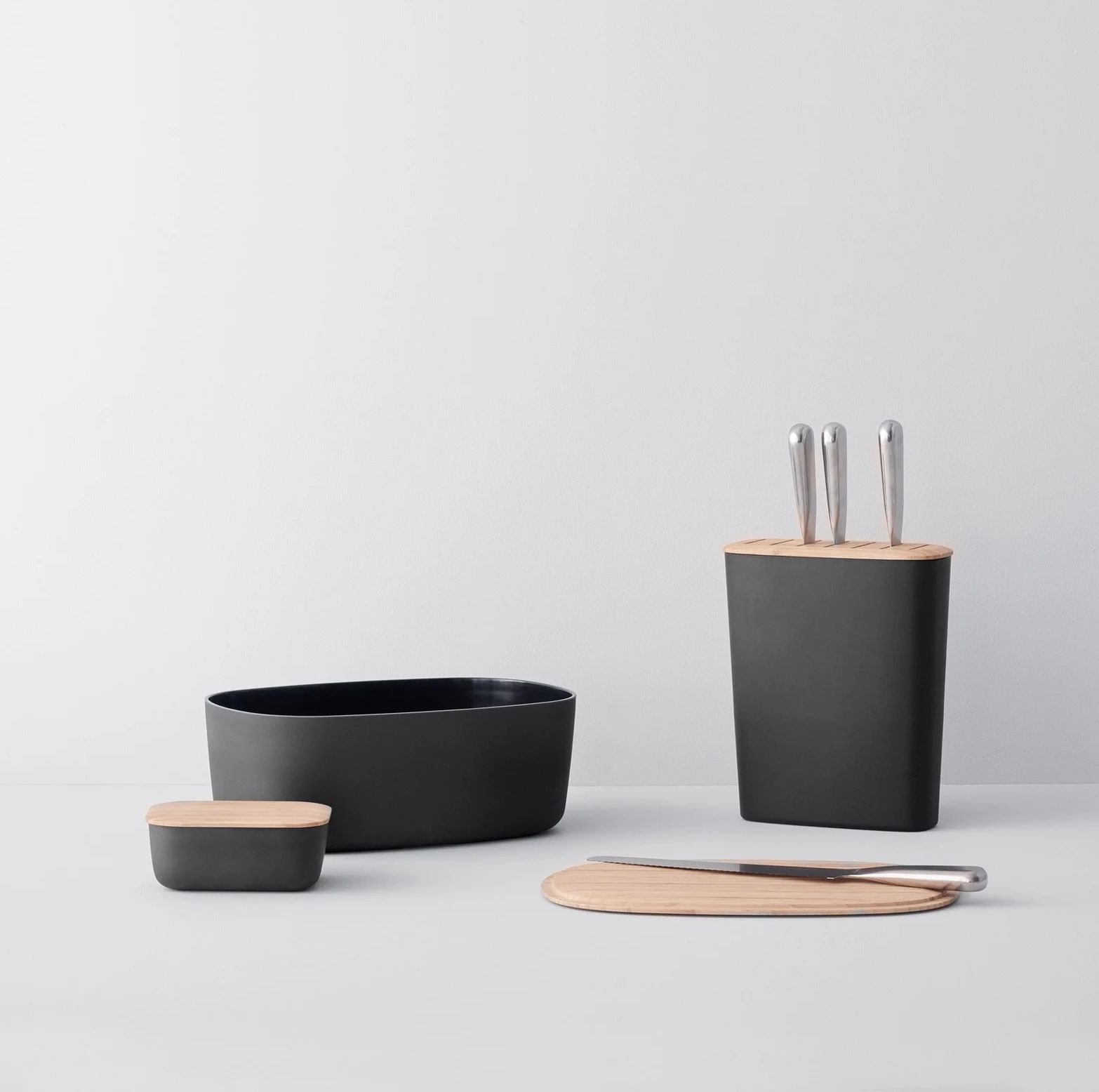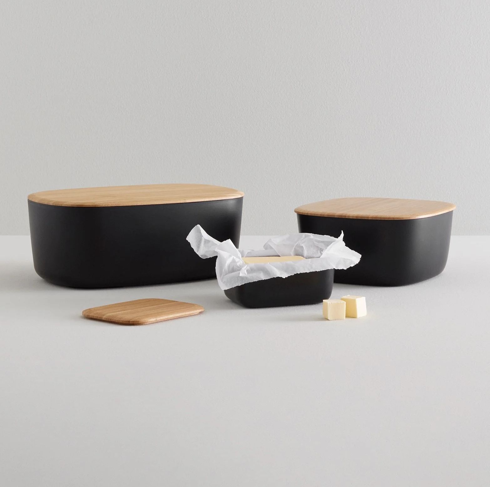 Cutie depozitare pâine RIG-TIG BREAD BOX Z00360 - 17006110, Capac din lemn de bambus, Corp din plastic PBT, Capacul poate fi folosit pe post de placă de tăiat, L34.5cm, l22.5cm, Î13cm, Neagră