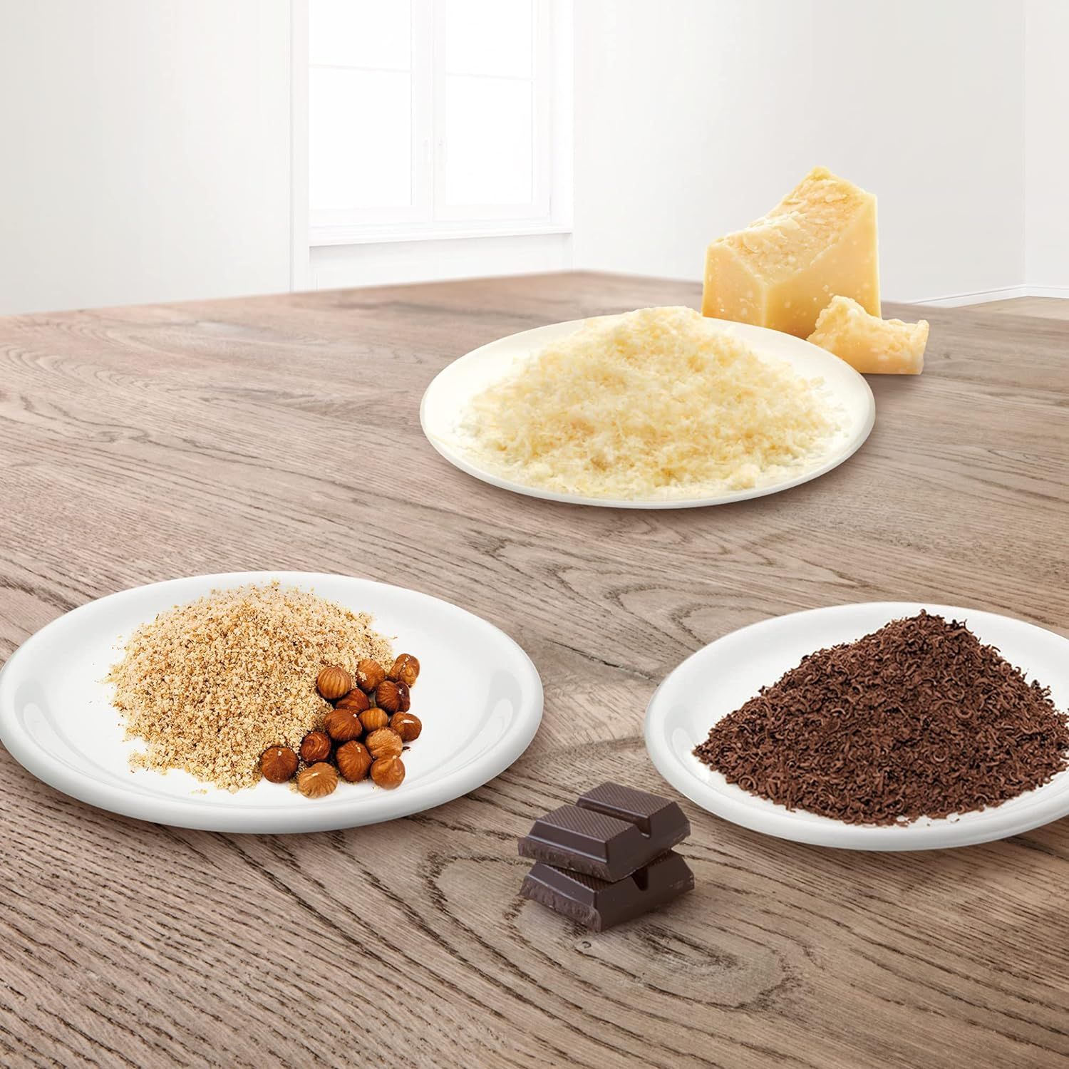 Accesoriul este adecvat pentru măcinarea alimentelor dure, de exemplu a migdalelor, nucilor, ciocolatei, brânzei tari sau a chiflelor uscate. Material de calitate superioară: nu lasă gust sau miros mâncării și este ușor de curățat.