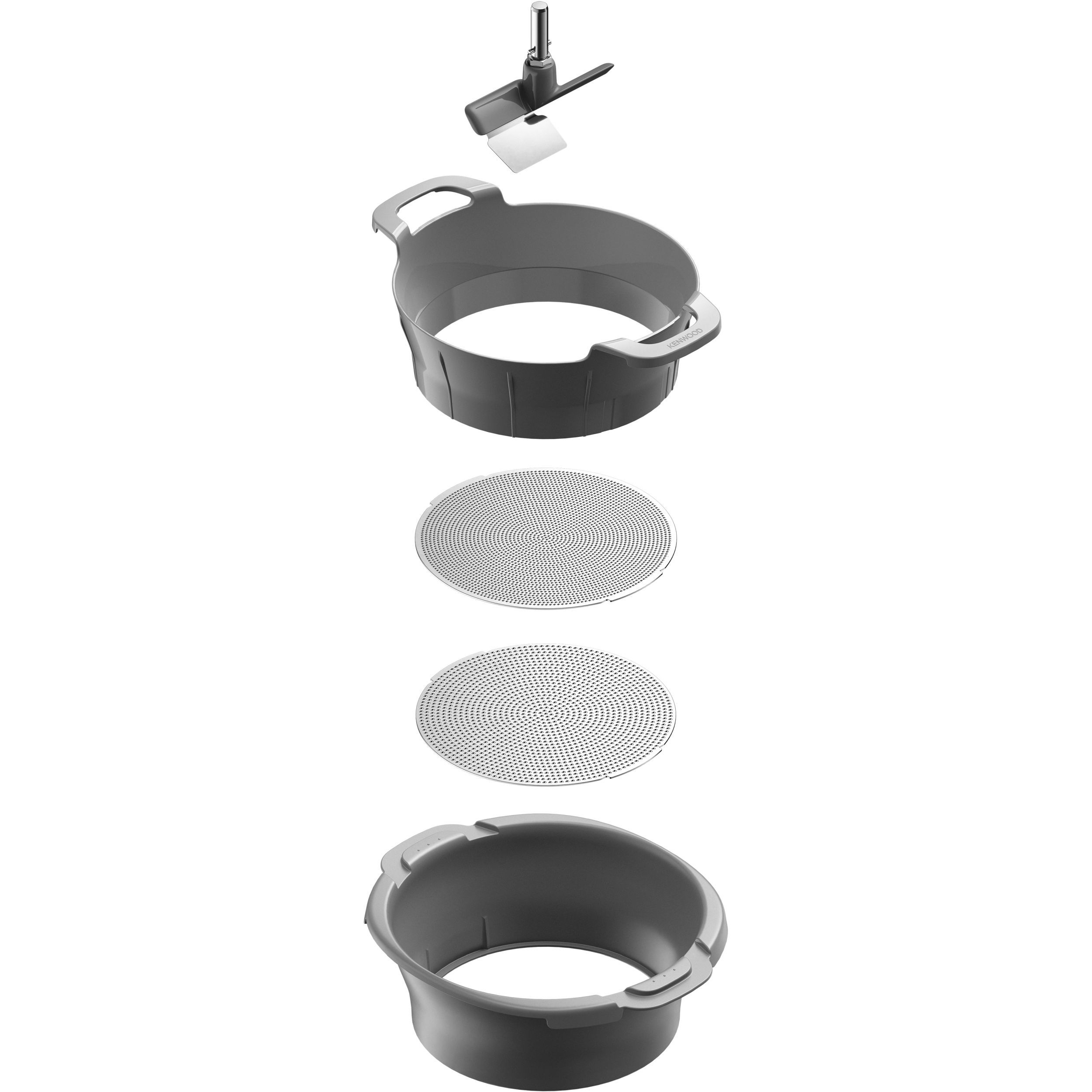 Permiteți motorului robotului dumneavoastră să suporte efortul de cernere sau pasare. Încărcați ingredientele gătite în vas, puneți paleta și porniți-vă robotul. Cernerea automată pasează și strecoară ingredientele prin sită, lăsând în bol cea mai fină passata, cele mai fine gemuri sau sosuri pentru paste.