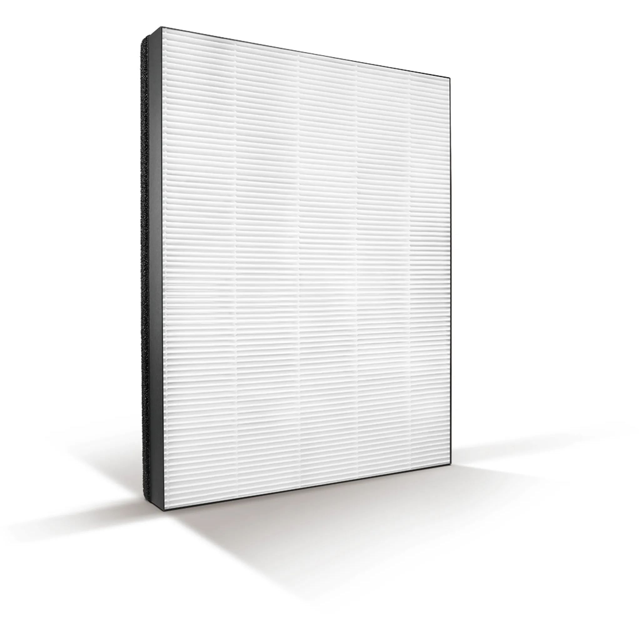 Filtrează 99,97 % din particulele de 0,3 µm. Filtrul HEPA NanoProtect seria 3 de la Philips este realizat dintr-un material de înaltă calitate. Poate să capteze până la 99,97 % din particulele foarte fine, cu dimensiuni chiar şi de 0,3 microni: dimensiunea celor mai obişnuiţi alergeni din aer, a particulelor periculoase, a bacteriilor şi a virusurilor. Filtrul de calitate superioară cu structură fermă şi stabilă asigură că tot aerul trece prin filtru şi oferă o eficienţă de filtrare ridicată.