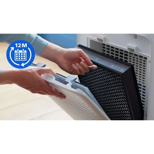 Durată de viaţă de până la 12 luni. Zona de absorbţie a filtrului cu carbon activ desfăcut este egală cu circa 43 de terenuri de fotbal, ceea ce oferă protecţie constantă şi o durată de viaţă de până la 12 luni.