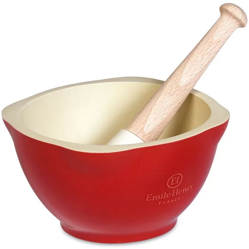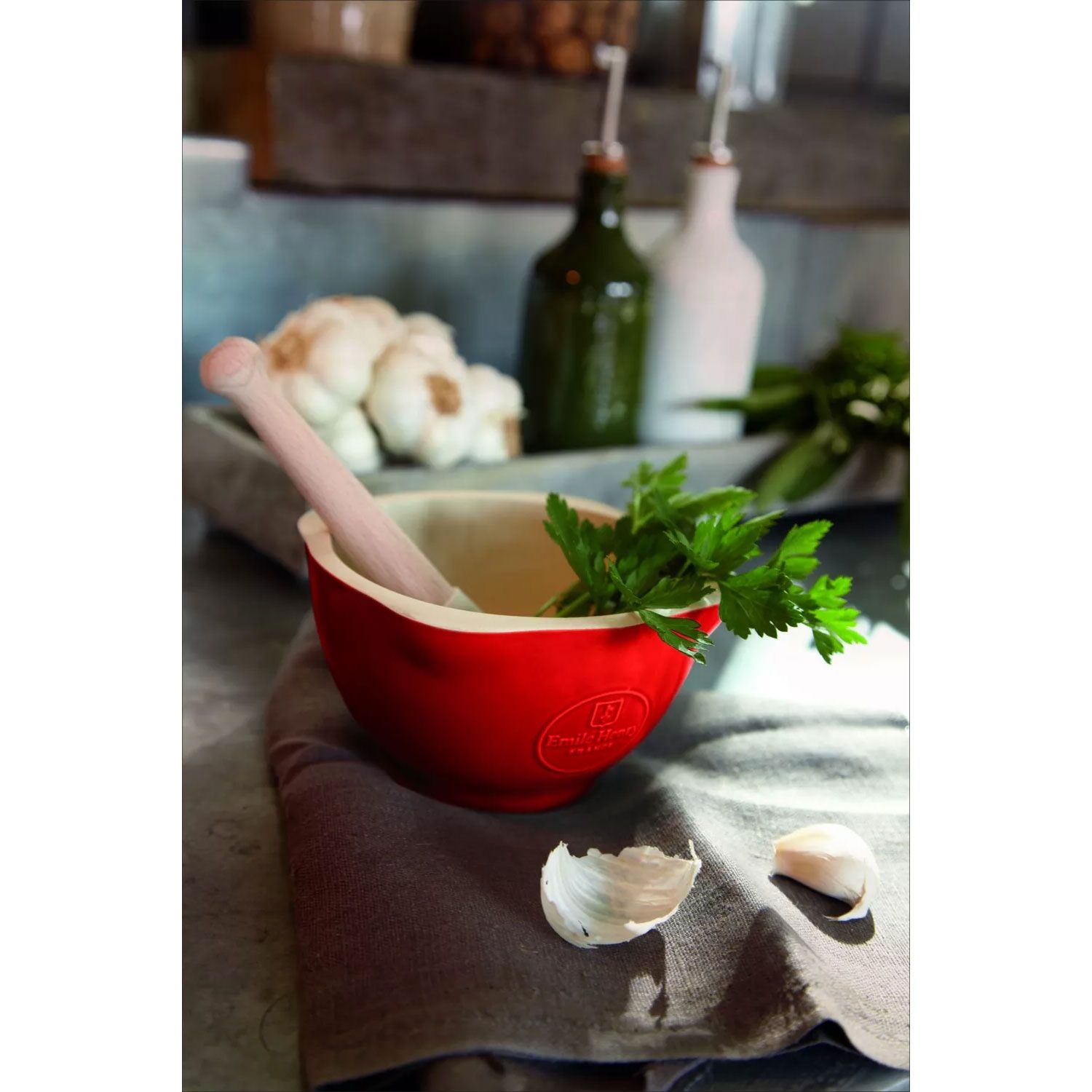 Mojar cu pistil Emile Henry EH340255 - 17006139, Ceramică extrem de rezistentă la căldură, Diametru 14cm, Înălțime 8cm, Rezistent la variații de temperatură -20°C~250°C, 62g, Pomegranate Red
