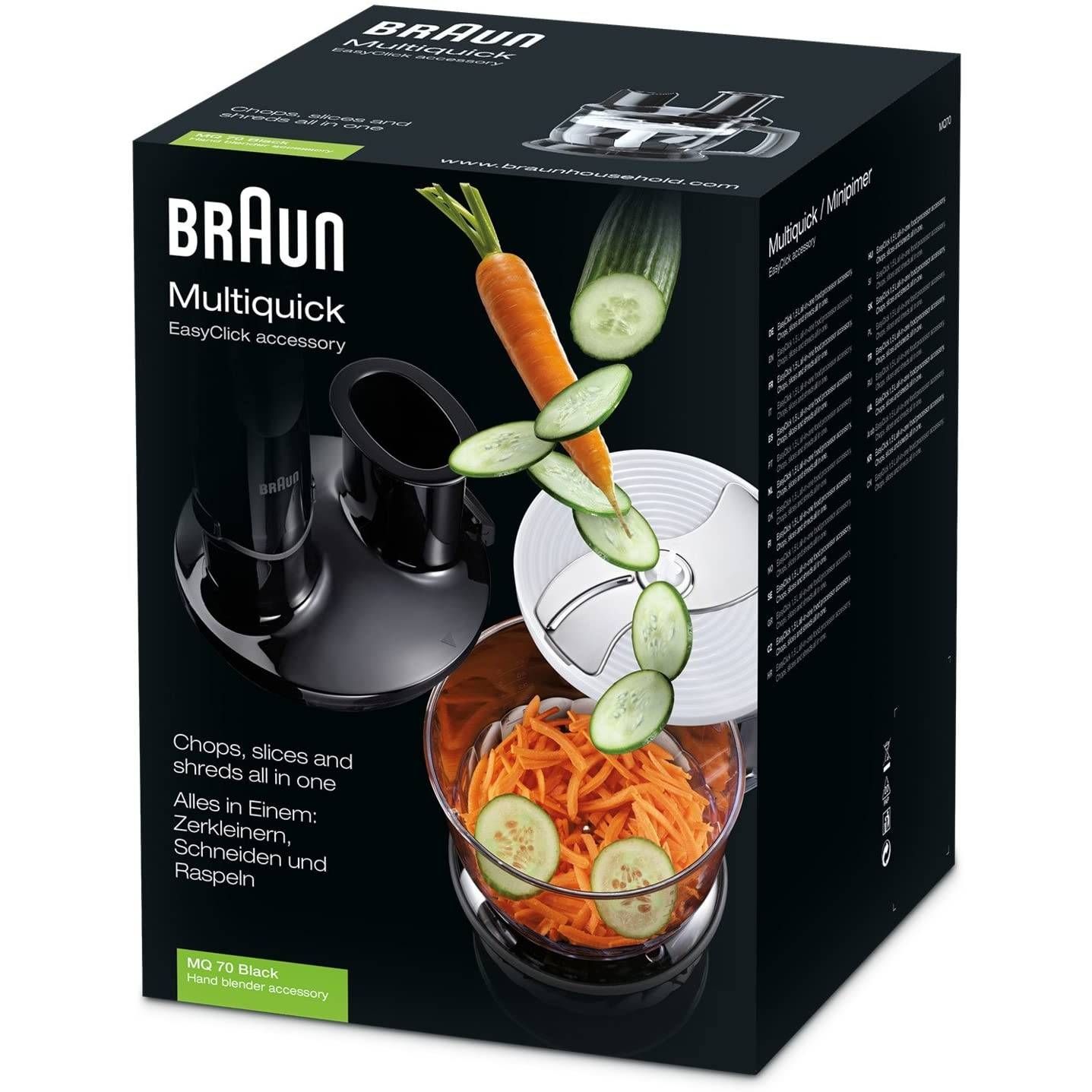 Procesator de alimente BRAUN MultiQuick MQ70BK - 0X81364466, Capacitate 1.5l, Toacă, Amestecă, Taie în felii sau fâșii subțiri, Frământă, Sistem EasyClick, Bază anti-alunecare, Fără BPA, Negru