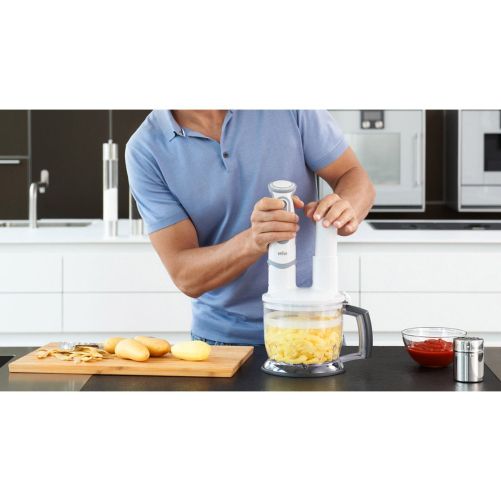 Acest accesoriu pentru procesarea alimentelor este ajutorul dumneavoastră universal în bucătărie, deoarece este ideal pentru toate activitățile: tocare și amestecare, precum și tăiere în felii sau în fâșii subțiri, în special, pentru frământarea aluatului.