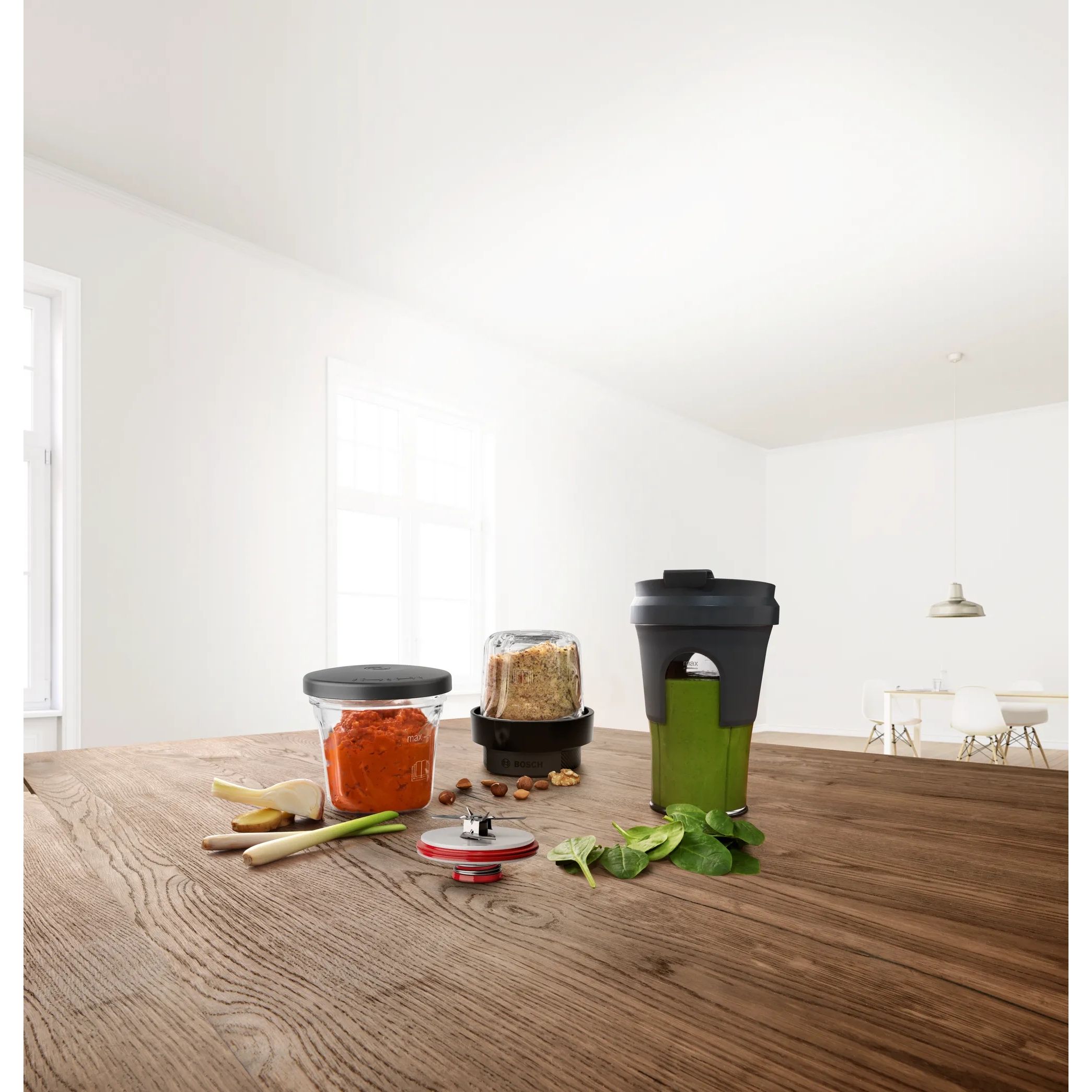 Datorită celor cinci funcții, poți pregăti feluri de mâncare sau smoothie-uri, să le iei cu tine și să te bucuri de acestea în mers. Sosul Pesto, aperitivele sau deserturile delicioase sunt ușor de preparat, datorită râșniței și tocătorului universal, totul se face foarte repede. Smoothie-urile și multe altele le poți prepara proaspete și le poți lua cu tine cu cana utilă ToGo.
