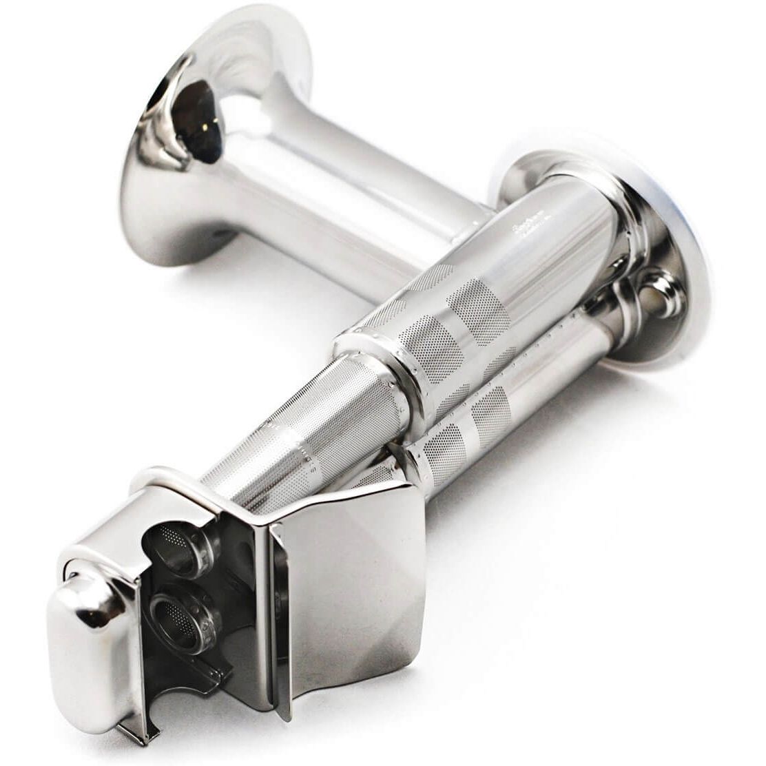 Sita pentru suc. Este un accesoriu fabricat integral din inox austenic de tip 316 (chirurgical) și care vă permite să înlocuiți sita inclusă în pachetul aparatului sau să beneficiați de o a doua sită pe care s-o puteți folosi acasă sau pentru afacerea dumneavoastră. Este identica cu cea inclusa în pachetul aparatului.