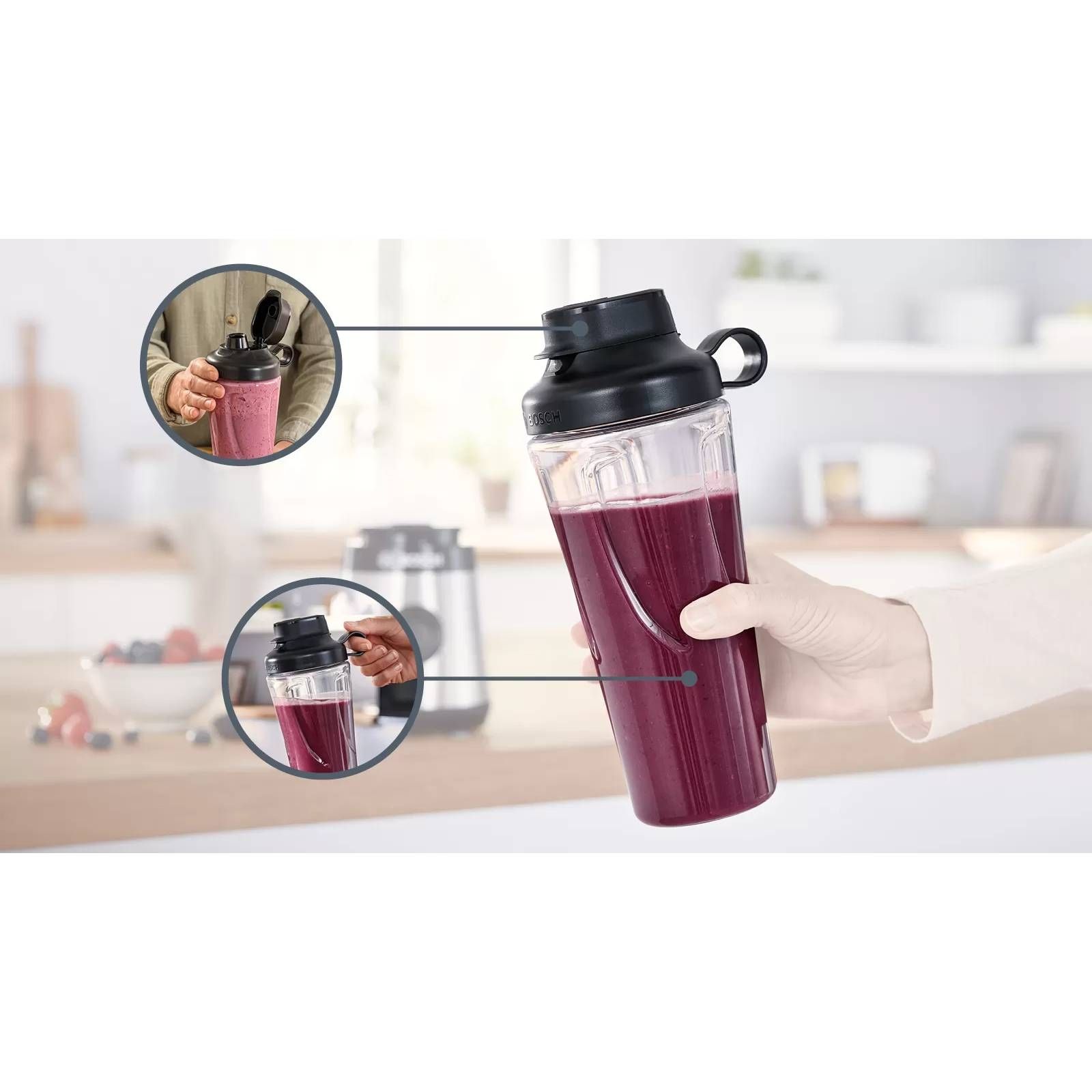 *Sticla ToGo din Tritan, fără BPA, îți permite să-ți iei la tine smoothie-ul proaspăt preparat oriunde ai merge, fiind ajutorul perfect pentru o zi activă.